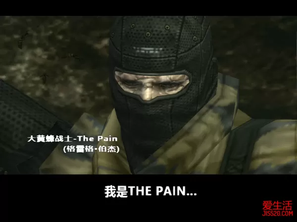 BASA仓库。没想到,刚走出仓库大门不久,在一条深沟对面,奥塞罗特又出现了! “看来The Boss的情报是可靠的。”奥塞罗特冷冷地说。“在你手下,我曾经两次惨败……” 他突然又发出了那种召唤部下的山猫叫声。一秒钟以后,Snake发现自己完全陷入了敌人的重重包围。 “我不想让眼镜蛇那帮人失望,不过……现在你已经是我的了。”奥塞罗特一挥手,“你们,全部退下。”他转向Snake,“现在没有人妨碍我们了。山猫是骄傲的生物,它们一向总是独自狩猎。”奥塞罗特边说边拔出一对左轮手枪,“这次我有12发子弹了……来,拔枪吧!” 左轮奥塞罗特的难度不大,躲在石头后面,趁左轮跳出来射击的时候直接用AK47盲射也能打中他,慢慢瞄的话可能反而比较麻烦。 两人正在激战,突然有一只黄蜂飞到了奥塞罗特脸上,“可恶!他找来了!”话音未落,一群凶恶的黄蜂如同一团活的乌云,不分敌我地对附近的所有人发起了袭击。Snake伏在地下躲避着黄蜂的蜇刺,奥塞罗特也不得不使出转枪的技巧来驱赶身边的蜂群。 周围的GRU 士兵在蜂群的疯狂攻击下一个个惨叫着相继倒地。眼见蜂群难以抵挡,Snake 只得纵身跳下了前面的山谷。 没想到山谷下竟是个深深的洞窟,洞内一片漆黑,伸手不见五指 洞内的地形其实并不复杂,仔细看下面的地图,绕出去并不难,中央有两个瀑布的地方可以捡到火把。 带着火把从侧面的小岔路进去,钻几个洞后可以到达一个中央有洞的空间,这里有一个夜视仪,还有一个青蛙玩具。 离开这片区域,在下一个区域注意要从右边的岔路走,那里有M37散弹枪,这玩意儿是后期对付沃尔金的利器。 Snake在路上找到一束火把照明,绕到瀑布上端,又走了一段山道,终于在尽头处的一个水潭前看到了明亮的天光。Snake走到潭边,抬头望向头顶的洞穴出口,看见的竟然是那群阴魂不散的黄蜂从洞口直扑而下,无奈只能跃入水潭游向对岸。 “我总算找到你了!” Snake刚钻出水面,就听见蜂群聚集处传来一个粗犷的语声。“我们是The Boss的儿子!”话音刚落,蜂群突然散开,一个戴着头套、身穿迷彩背心的彪形大汉现身了。 “我叫The Pain……我会把你领进一个无法想象的痛苦世界中去!”说着,他猛然张开双臂,蜂群如同接到了指令,迅速聚集到了他的两条手臂上,“我们开始吧!” 在所有的BOSS里面,The Pain其实挺麻烦的,因为他大部分时间有蜜蜂包围,刀枪不入,能击中他的时间窗口并不长,用手榴弹击中也可以让他硬直,露出弱点。 对付他的关键,就是要经常到水下躲避黄蜂,上来攻击的时候不要贪刀,错过时间窗口就再跳下水。 Snake从来没有碰见过能够操纵蜜蜂进行攻击和防御的对手,但是凭借潭水的掩护他还是在周旋中慢慢占据了主动,终于,经过一番你来我往的拉锯战,面目狰狞的The