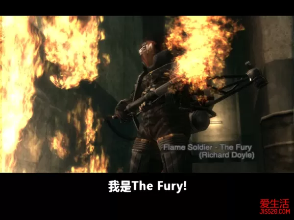 Boss回答说。 “什么?” “他们还想要我的命。上校,加强这里的防卫吧,他一定会来的!我现在要去找Davy Crockett”The Boss一夹马腹,骏马放开四蹄疾驰而去。沃尔金上校望望头上昏暗的天色,转身走向大楼,空地上只剩下了奥塞罗特和坦尼娅两人。 奥塞罗特正想离开,却从在坦尼娅身上嗅到了什么气味。“香水?”他若有所思地停下了脚步,突然间举起 The Fear留下的强弩,抵住了 坦尼娅的喉咙,面对锋利的箭头,坦尼娅吓得动也不敢动了。 奥塞罗特的目光落在坦尼娅脚上。“好漂亮的皮靴,要注意保养呢。”扔下这么一句话,奥塞罗特也离开了。 Snake用伊娃交给的钥匙打开半山腰的一道红色铁门,进入了通向要塞的地道。走着走着,一团突如其来的熊熊烈火把昏暗的地道照得通明,一个身穿宇航服样盔甲的人出现了,他手持强力喷火枪,肩背喷射飞行器,气势汹汹地向Snake 逼近,The Fury! 面对The Fury可怕的攻击方式,Snake只能利用周围的环境和他慢慢周旋,几经辛苦,Snake终于成功地抓住了The Fury的一次失误,连续扫射把他击倒。 “Boss……这就是眼镜蛇部队的终结……”受了重创的The
