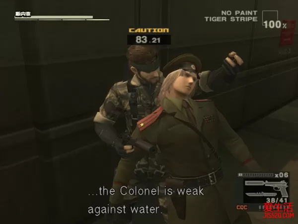 Sorrow了……”随着一声巨响,TheFury身上的燃料发生了猛烈的爆炸,这名操纵火焰的战士瞬间化成了一个巨大的火球,在狭窄的通道中乱飞乱窜,直至灰飞烟灭。 Snake继续前行,爬上一道梯子,潜入了Groznyi Grad内部。 Groznyi Grad分为四个区域,四个区域都是互通的,实验室的门在东北区域的中央红门。 实验室里面有很多锁着的门,但是没有任何钥匙可以打开。不过如果你用CQC威胁这里的守卫,可以逼问出打开门的方法,是联系一个特定的无线电频率,比方说,145.86。 按照伊娃的提示,我们应该先找到一个号称雷电的诺维奇·雷科夫少校,他满头银发,长得很帅,很容易就能发现。 趁周围没什么人,用CQC打晕(不能打死)少校,把他拖到二楼更衣室,换上他的军装,戴好面具之后,Snake就活脱脱成了雷科夫少校的翻版。 走出更衣室,Snake不再需要回避任何敌兵了,可以大摇大摆地在实验室里到处走,而且那些锁着的门也会打开。注意楼下有一把蝎式冲锋枪,趁这个机会轻松拿走。 搜刮完周围的东西后,再次来到二楼更衣室,从更衣室后面的门进入主楼,穿过一道由两名士兵把守的大门。 |