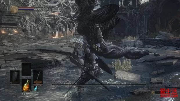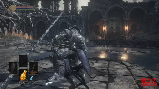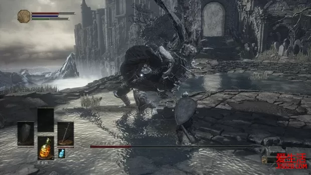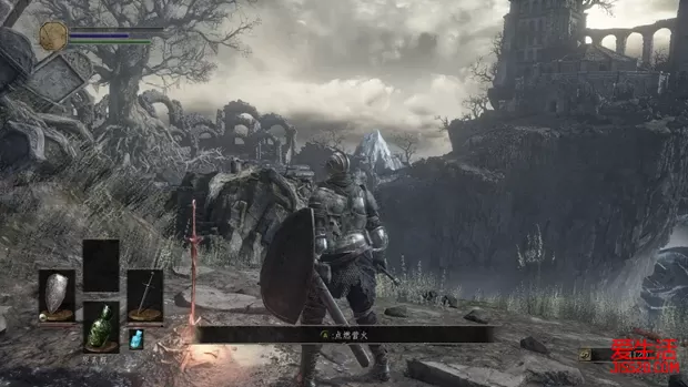 | 游戏评价/灰烬墓地(01) 洛斯里克的高墙(02) 不死聚落A(03) 不死聚落B(04) 活祭品之路(05) 幽邃教堂/净身小教会A(06) 幽邃教堂/净身小教会B/帕奇支线(07) 法兰城塞(08) 卡萨斯的地下墓地(09) 熏烟湖(10) 冷冽谷的伊鲁席尔(11) 亚诺尔隆德(12) 伊鲁席尔地下监牢/罪业之都(13) 洛斯里克城(14) 大书库(15) 妖王庭院/无主墓地(16) 古龙顶端(17) 初始的炉火/三个结局(18) DLC1/雪原/绘画底端(19) DLC1/鸦村/覆雪山径/苍蝇巢穴/修女和神父(20) DLC2/聚集地/推土塔(21) DLC2/环印城市街/沼泽地(22) DLC2/黑龙米狄尔/奴隶骑士盖尔(23) 作为“黑暗之魂”三部曲的终章,《黑暗之魂3》无疑是系列的集大成之作——无论是故事体量还是战斗系统,均达到了系列巅峰水准。尽管场景整体结构不算复杂,但凭借精妙的关卡设计与沉浸式的氛围营造,仍让玩家的探索之旅充满乐趣。 从难度来看,本作相较《黑暗之魂2》有显著下调,但依然保留了系列标志性的“阴间场景”与众多棘手强敌;而气势磅礴的BOSS战,更将“黑暗之魂”的史诗感推向了全新高度。值得一提的是,与《黑暗之魂2》不同,《黑暗之魂3》中充满了对前作的致敬:经典场景的复刻、关键人物的回归、故事线的延续,这些设计都让老玩家倍感亲切。 本作场景大多开阔宏大,玩家初入新场景时,难免会对前进方向感到迷茫。但实际上,每个细分场景的规模并不大,看似复杂,实则岔路极少;往往在探索中感觉已深入甚远,回头开启捷径时,却能瞬间回到熟悉的篝火旁。这种“探索-捷径-回归篝火”的地图设计逻辑,贯穿了游戏全程。此外,场景中还隐藏着一些极不显眼的分岔路,其尽头通常藏有宝箱或关键道具。在本攻略中,我们会明确标注所有重要道具与必走岔路,至于普通道具,则留给玩家自行发掘,保留探索的惊喜感。 需要明确的是,黑暗之魂系列的难度核心从未集中于BOSS战,《黑暗之魂3》亦是如此:其绝大部分BOSS战难度反而有所下调,真正的挑战实则藏在探索途中的“恶意场景”与棘手杂兵中。相较于前两代,本作的机关数量大幅减少,篝火(存档点)之间的距离也显著缩短,但部分场景的“恶意设计”搭配杂兵围攻,仍能让玩家屡屡陷入困境——而这份“受苦后突破”的体验,正是本作的魅力所在。善用“跑酷”技巧、适当无视途中敌人,能让探索过程轻松不少。 因此,本作最高效的探索方式可总结为:抵达新场景后,先通过跑酷快速推进、熟悉地形,直至找到下一处篝火或开启捷径;随后返回上一处篝火,对已探索区域进行地毯式搜索,再继续推进下一段路程。不过无需过度担忧难度——相较于《黑暗之魂1》,尤其是《黑暗之魂2》,《黑暗之魂3》的门槛已明显降低,若你是从系列前作一路“受苦”过来的老玩家,大概率能较为轻松地适应。 与前两作一致,本作主角同样拥有两种状态,对应前作“人形”与“活尸”的设定,在《黑暗之魂3》中则被称为“余火”状态。值得称赞的是,主角处于无余火状态时,外形并不会像前两作的“活尸形态”那样狰狞,无需担心视觉上的不适——这或许是制作人宫崎英高为照顾玩家体验所做的贴心调整。 余火状态的核心增益的包括:HP提升至非余火状态的1.4倍;联网时可能遭遇其他玩家入侵,即便单机模式下,也会触发红色NPC的入侵事件,同时还能获取更多道具奖励。此外,保持余火状态时,玩家还能在BOSS战前召唤NPC协助作战,这一点与前作设计一致;不过本作的可召唤NPC数量少于《黑暗之魂2》,并非每个BOSS都能找到“帮手”。 下文的流程攻略中,将详细拆解每个场景的前进路线与重要道具位置(普通道具则留给玩家自行探索,保留发现的乐趣,就像什么这魂那魂的,加魂量很少,效率远不如刷魂点,没拿到也无所谓);同时也会梳理关键NPC的支线任务——需特别注意的是,《黑暗之魂3》的支线任务存在部分冲突,因此攻略末尾会单独开辟章节,汇总所有支线的触发条件、关键节点与冲突解决方案。 灰烬墓地 游戏一开始玩家需要创建自己的人物,各种出身的能力值和初始装备有差别,但是鉴于游戏的升级速度还是挺快的,通关的时候也是100级以上,所以出身对游戏过程的影响微乎其微,不过对于新手玩家来说,还是推荐选择骑士作为开局角色,因为最初的骑士盔甲就挺强,长剑也是可以用到通关的好东西,还有个盾牌,可以实现很多持盾绕怪的操作,从开局就属于一个成熟的套路。至于陪葬品可以随便选,都不是什么稀有物品 开篇动画交代了余火和薪王们的前世今生,当钟声响起,薪王们就会觉醒,等待一个传火的余烬出现。主角从墓地的棺材里爬出来,进入游戏的第一个场景,灰烬墓地。 这里的敌人强度很低,只要注意不要被围攻即可。开始游戏往前走,在喷水池的尸体处能捡到元素灰瓶(元素灰瓶可以理解为1个元素碎片,加上11个元素碎片,以及一开始就有的3个原素瓶,最终总数是15个原素瓶,1/12)。 元素灰瓶一开始是回蓝用的,但是当回到传火祭祀场时,可以请铁匠重新规划原素瓶的数量,把这个元素灰瓶换成原素瓶,到这样玩家初始的原素瓶数量就有4个,不过现在还没到传火祭祀场,暂时还不能改。继续往前走就能远远地看到天空,那方向便是前进的道路。 在峡谷的右边有一条小路,需要玩家涉水才能到达,深处是一条结晶蜥蜴,对于现在的玩家来说比较棘手,但并非不可战胜。利用其翻滚攻击的硬直反击即可,在与它近身缠斗的时候小心