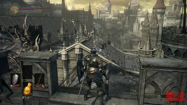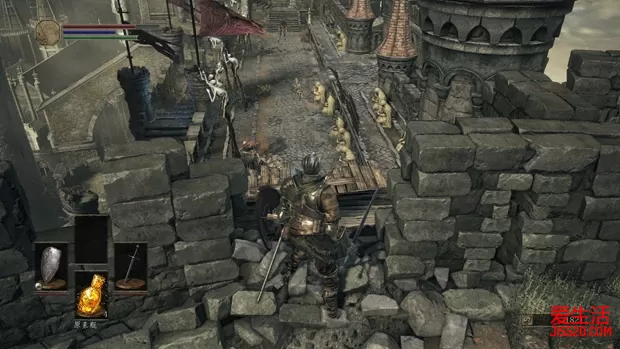 | 游戏评价/灰烬墓地(01) 洛斯里克的高墙(02) 不死聚落A(03) 不死聚落B(04) 活祭品之路(05) 幽邃教堂/净身小教会A(06) 幽邃教堂/净身小教会B/帕奇支线(07) 法兰城塞(08) 卡萨斯的地下墓地(09) 熏烟湖(10) 冷冽谷的伊鲁席尔(11) 亚诺尔隆德(12) 伊鲁席尔地下监牢/罪业之都(13) 洛斯里克城(14) 大书库(15) 妖王庭院/无主墓地(16) 古龙顶端(17) 初始的炉火/三个结局(18) DLC1/雪原/绘画底端(19) DLC1/鸦村/覆雪山径/苍蝇巢穴/修女和神父(20) DLC2/聚集地/推土塔(21) DLC2/环印城市街/沼泽地(22) DLC2/黑龙米狄尔/奴隶骑士盖尔(23) 洛斯里克的高墙 从传火祭祀场传送到洛斯里克的高墙,从塔楼下来后点燃篝火,面前有两条往下的路可以选择,右方的尽头塔楼上能获得武器“长弓”和箭失,这是在特定地点非常有用的装备,建议先获得 注意这里的敌人还是挺阴间的,篝火旁就有个弩手躲在平台上,玩家一跑下去就会被偷袭。下面的两条狗旁边岔路也会有强力活尸来回巡逻,第一次玩肯定会被这几个家伙打得措手不及,多死几次熟悉就好。 尽头的塔楼上除了有“长弓”和箭失,还有个强力怪物,一只活尸收深渊感染,会变身成深渊黑蛇,不过赶在他变身前打死就可以避免这个强力敌人出现,捡完武器走人。 回到篝火,从另一边下去。下来后一路前进,中途会有几个敌人袭击玩家,稳打稳扎即可。 注意,在漆黑的门左侧有条小路,上去后尽头通向龙的尸体,那里有个道具望远镜,虽然我从头到尾都没用过这个望远镜,但还是捡了吧。 望远镜这里的龙尸体一侧有个城墙缺口可以跳下去,下去后就能捡到窗台上的东西,从这里跳下去就是刚刚那个漆黑大门的里面,这里有的敌人藏得很阴间,我就不提醒你了,死一次你就能背板了 从漆黑的房间爬梯子下去,此时玩家会有两条路可以选择。第一次来建议走左侧上楼的路。走到一半,会出现一条龙喷火,这条路不要和杂兵纠缠,直接跑酷,就可以赶在龙喷火前溜过去。 龙的吐息攻击是敌我不分的,它的吐息会把这里大部分的敌人杀死,但是以后再走这条路,就只能利用吐息的间隔从下路快速通过,直到杀死这条龙以前,都只能从下路走了。其实这条龙可以用弓箭慢慢磨死,但是会消耗很多弓箭,建议等魂多了,买大量弓箭把它干掉,可以掉落一个楔形石块 上路的房间深处有一个宝箱,不过这其实是个宝箱怪,外表和一般宝箱无误,但如果傻乎乎地过去打开它的话,就会受到大伤害,初期基本就是一击必杀。区分宝箱怪的方法,是看宝箱的盖子会不会动,以及箱子右侧的锁链向前的是宝箱怪,向后的则不是。以后的攻略中也会提醒每一个宝箱怪的位置。 宝箱怪的攻击相当的难缠,而且由于大部分遇到宝箱怪的地点都是在狭窄的房间或者通道,攻击一下再翻滚是个比较安全的打法。宝箱怪只要击倒了就不会再复活。 从宝箱怪的房间出来,会在城墙上看到一个洛斯里克剑盾骑士,这家伙比一般杂兵强力很多,会使用盾牌和武器攻击玩家,还有大量连招。如果是第一次玩,就不要和他纠缠,等他下楼后再前进,点燃下一个篝火后再来和他练习。 躲开洛斯里克剑盾骑士,进入前方漆黑的塔楼,小心理伏的敌人后直接往右出去,在塔顶便是篝火点高墙边塔。 高墙边塔 休整过后就可以继续前进了,返回刚才那个漆黑的房间然后往下爬,等刚刚那个洛斯里克剑盾骑士出门后,再把房间里的偷袭小怪打死。 此时玩家有两条路可以选择,继续往下爬或者是走出塔外。往下的话能找到NPC“不死聚落的葛雷瑞特”,不过由于他被关在牢房里,没有钥匙,暂时还不能释放。而走出塔外则为前进的道路。 在屋顶上玩家会再一次遇到变异的深渊黑蛇。和第一个BOSS类似,这种敌人在被火属性攻击打中后会陷入一段比较长的硬直,其本身的弱点也是火属性。顺便一提,在变异前把它杀死和变异后杀死掉落的东西是不一样的。如果实在打不过,就离他远一点通过这里。 注意屋顶的尽头有一个结晶蜥蜴,这是送我们升级武器道具的,只是一看到我们就会逃跑,不过这只结晶蜥蜴是掉不下去的,不用担心,慢慢追上砍死即可 在沿着楼梯往下爬后立即准备回避来自身后弓箭手的攻击。在弓箭手的身后还有数个敌人,解决后身后会有一条楼梯,往下通向一个满是盔甲尸体的广场 但我们不要从楼梯爬下去,而是选择往身后的大厅走,这里有一名拿着大盾和长枪的骑士,和之前遇到的骑士敌人类似,对付他,可以选择举盾向左绕,结合翻滚闪避就能击败他。 长枪骑士大厅左侧有个小岔路,里面有些道具,但也有理伏的敌人,位置相当阴险。 沿着长枪骑士的大厅一路前进,对付一两个埋伏的敌人后,来到一个二层的大房间,先别急着下去和敌人战斗。先从二层的另一边过去,把两个扔火炎壶的敌人解决再说,要不然一会房间内的“火药桶+敌人+火焰壶”的组合瞬间就能把玩家打回老家,这里的宝箱不是宝箱怪,放心开。 解决二楼扔火焰壶的敌人后再下楼,楼下有大量敌人,包括一只能看见的狗,还有一只藏得很阴间的狗,以及几个巡逻的强力活尸,一个一个引到楼梯上打会比较安全。 最后收集道具,其中最重要的是提高原素瓶最大值的原素碎片(2/12),其实是11个,总数12是因为我把第一关的元素灰瓶计为1,后面不再赘述。 还有打开上面提到的NPC所处的牢房钥匙“监牢的钥匙”,楼梯下也有个楔形石碎片别忘了 但是这里还没完,回到长枪骑士的大厅,前面通