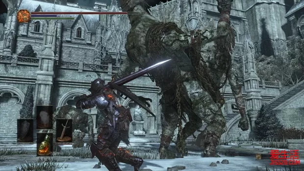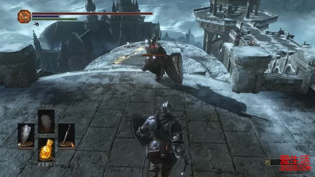 | 游戏评价/灰烬墓地(01) 洛斯里克的高墙(02) 不死聚落A(03) 不死聚落B(04) 活祭品之路(05) 幽邃教堂/净身小教会A(06) 幽邃教堂/净身小教会B/帕奇支线(07) 法兰城塞(08) 卡萨斯的地下墓地(09) 熏烟湖(10) 冷冽谷的伊鲁席尔(11) 亚诺尔隆德(12) 伊鲁席尔地下监牢/罪业之都(13) 洛斯里克城(14) 大书库(15) 妖王庭院/无主墓地(16) 古龙顶端(17) 初始的炉火/三个结局(18) DLC1/雪原/绘画底端(19) DLC1/鸦村/覆雪山径/苍蝇巢穴/修女和神父(20) DLC2/聚集地/推土塔(21) DLC2/环印城市街/沼泽地(22) DLC2/黑龙米狄尔/奴隶骑士盖尔(23) 亚诺尔隆德 击倒沙力万后就可以继续前进了,广场半圆形广场上有两只宝石虫,不要遗漏。 上来是一片宽大的通道,先进入左边黑暗的门洞,干掉一群游魂后获取暗方石戒指。 出来后从通道继续前进,从石阶上来左边有个小门通往教堂的二楼,进去有一个宝石虫,掉落愚人宝石,尽头还有个宝箱怪。这里有个开关,可以打开到教宗沙力万篝火的捷径。 出来后继续往前,会遇到两个非常灵活的敌人,一个手持双枪,一个手持双锤。 这附近还有很多三人一组的主教,会放火球术,跑酷时很容易被打中。 干掉他们后来到一个满是巨人“尸体”的广场,其实只要靠近这些巨人,其中两个就会复活。 进入广场上面的房间内,左前方的墙壁是隐藏门,可以打穿 沿着楼梯下去后会来到一片大水域,这里有两个之前在桥上遇到过的长毛狗等着玩家。利用弓箭先把较近的那一个引过来再逐个击破。 在尽头会找到“大主教麦克唐纳”,这里同时也是誓约“吞噬神明的守护人”的所在地。 原路返回,经二楼来到屋顶,左边有个龙鳞楔形石别忘了捡一下。然后跳上房顶,再次到达一个非常难打的地方。 这里又是一代王城房梁的重现,高处同样有银骑士向我们射击,而且还不止两个,一路上都有。这里没什么可说的,必须要自己一步步踩坑才能通过,推荐尽量跑酷到顶部,然后左拐一路冲到尽头,打开篝火捷径之后再回头来清理敌人和道具。 这里的银骑士是会刷新的,坐火之后就又出来了,所以没办法,只有稳扎稳打。这里值得获取的道具是右边石阶往下的东方人骨灰,以及长枪银骑士所在房梁下面的猎龙大弓 解决这些敌人后进入暗月灵庙,灵庙里最大的雕像是个隐藏门,如果触发了安里的结婚剧情,这个隐藏门就是自动打开的。 无论这个周目是否走结婚剧情,都可以进去清一下道具,大部分都很明显,只有祭台右边有个黑乎乎的通道,尽头是个化生戒指。 从暗月灵庙出去,拉下右侧的开关,把旋转塔放下来即可继续前进,这个建筑玩过黑暗之魂1的玩家应该再熟悉不过了。上去后再拉动一次开关即可来到“亚诺尔隆德”。 点燃篝火后别急着前进,返回再次拉动机关,在塔楼左侧的“断桥”处其实是可以走的 一路踏着“隐形桥梁”,过去后就是誓约“暗月之剑”,骑士团长幽儿希卡的所在地,完成希里丝的任务后可以来签定契约,这里还有个篝火。 从幽儿希卡身后的塔里沿着木头横梁慢慢往下跳,获得绘画使者套装,都是黑暗之魂1里面出现过的装备。最后来到亚诺尔隆德篝火 “亚诺尔隆德”的结构相当简单,干掉两个银骑士后一路往上到达教堂大门,在余火状态下触摸召唤印,帮助希里丝击败艾尔德利奇。 大门左右两边看似都有路,但其实右边没什么好东西,还有个强力的银骑士,感兴趣就去干掉它。 从左边进去,一进门就看到黑暗之魂1里面那个王城巨人铁匠,不过已经死了,捡起巨人余烬,之后从教堂大厅顶层通道绕下来。 大厅里有一堆用火球的幽邃主教、大量泥巴怪,以及一个攻击附带诅咒效果的诅咒蜘蛛。干掉二楼的敌人,再用弓箭消灭诅咒蜘蛛,最后慢慢清理掉剩下的敌人 注意大厅右边楼梯后面有个宝箱,里面是原素碎片(9/12),可别忘了。 整理过后就可以去打开位于入口左侧的开关来打开大门,回去篝火那里整顿一下,接下来就是BOSS战。 BOSS薪王:吞噬神明的艾尔德利奇 BOSS的攻击手段多是以远程为主,其远程攻击分为两种,8发的诱导型光弹,威力低速度慢,但被连续打中的话会严重受伤;大型魔法弹,速度快、可以贯通场景且威力高,是威胁度最高的招数,利用翻滚可以躲开,越接近BOSS,BOSS发动该招的频率就越低。第一阶段BOSS会提起弓箭射击,其范围成扇形。玩家可以趁BOSS举弓射击这段时间对其进行输出,不过小心不要走进其射击范围,要不然可能会被秒杀。 BOSS还会近身攻击,不过速度很慢,威胁不大。每当玩家攻击BOSS到一定程度时他就会瞬移离开,消失前会有攻击判定,小心别贪刀。BOSS的HP在60%以下时便会进入第二形态,第二形态的攻击基本类似,但弓箭攻击会从固定范围射击变成追踪玩家,玩家需要不停移动以躲开箭雨。 综上所述,对付BOSS的方法其实很简单粗暴,就是不停追着他跑,以保证他不会发动威力最高的大型魔法弹。其余的招数则见招拆招,光弹和弓箭回避,近身则利用翻滚或者盾牌防御后反击。第二形态后也一样,但回避弓箭时不要离BOSS太远,可以绕着BOSS跑,这样做可以避免和BOSS拉开距离使得他使用大型魔法弹。 击败艾尔德利奇后,乘坐两边的自动升降梯上去二楼,到太阳公主的房间内捡取太阳公主戒指 多周目重要道具 绿花戒指+1,礼堂的祭坛后,二周目出现 贪欲金蛇戒指+1,黑暗房间出来后,右侧棚栏缺口处跳下的尸体处,二周目出现 木纹戒指+2,三名强力敌人的房间外右侧的尸体上,二周目出