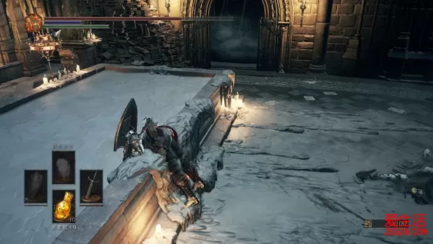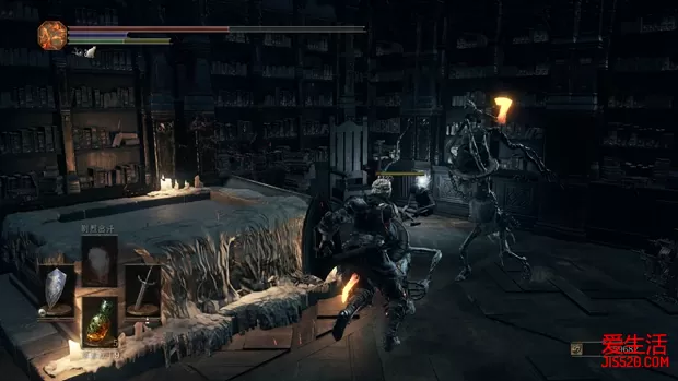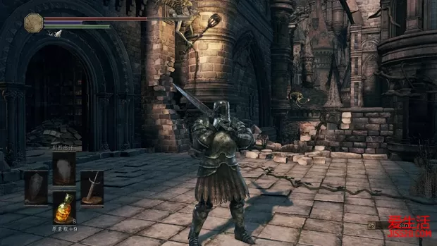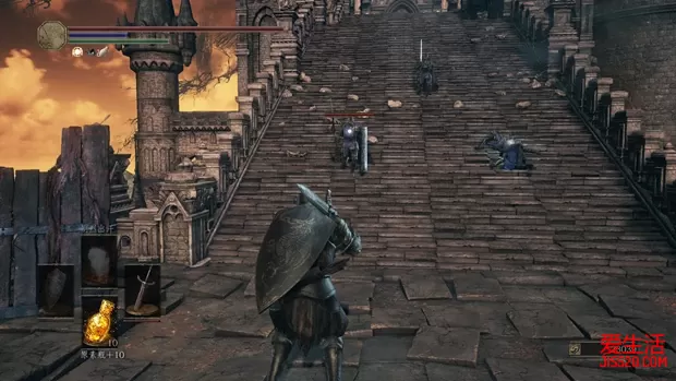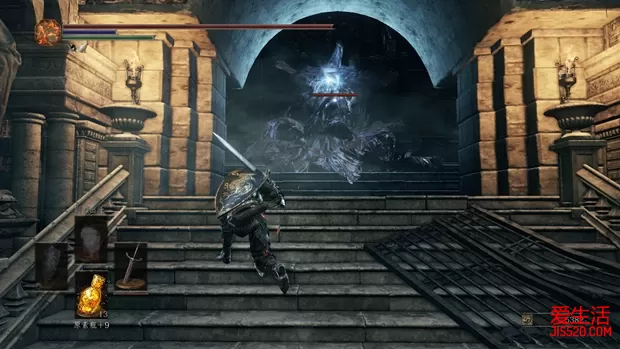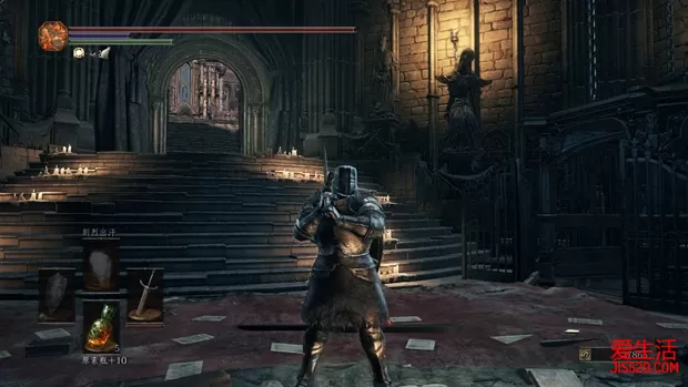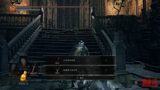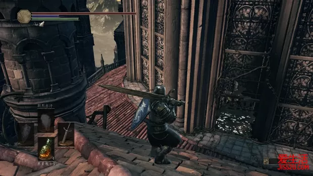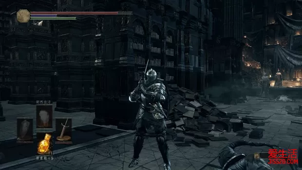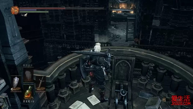 | 游戏评价/灰烬墓地(01) 洛斯里克的高墙(02) 不死聚落A(03) 不死聚落B(04) 活祭品之路(05) 幽邃教堂/净身小教会A(06) 幽邃教堂/净身小教会B/帕奇支线(07) 法兰城塞(08) 卡萨斯的地下墓地(09) 熏烟湖(10) 冷冽谷的伊鲁席尔(11) 亚诺尔隆德(12) 伊鲁席尔地下监牢/罪业之都(13) 洛斯里克城(14) 大书库(15) 妖王庭院/无主墓地(16) 古龙顶端(17) 初始的炉火/三个结局(18) DLC1/雪原/绘画底端(19) DLC1/鸦村/覆雪山径/苍蝇巢穴/修女和神父(20) DLC2/聚集地/推土塔(21) DLC2/环印城市街/沼泽地(22) DLC2/黑龙米狄尔/奴隶骑士盖尔(23) 大书库 回到篝火点“猎龙铠甲”,继续前进就能到达大书库,点燃篝火并捡起钥匙后就可以进入大书库了。 初次进入大书库的时候,对面会有一个和之前BOSS结晶老者长得一摸一样的敌人,其攻击方法也是一样,大书库前半部分的探索将会以解决它为主要目标。和之前类似,它在受到一定伤害后会瞬移并转移到下一个地点。 我们一开始沿着左侧走,路上会有一个宝石虫。继续走左侧的楼梯,最终会到达一个大蜡池。 这时回头,后面的通道有个骑士,干掉骑士一路往回,可以捡到一些道具。 捡完道具再从左侧回到大蜡池这里,一定要在蜡池里浸泡之后再进右侧的门。因为后面的书架会出现“触手”对玩家造成“诅咒”状态,只要把头浸在蜡里面,一段时间内“触手”就不会攻击玩家,注意,被火属性攻击击中的话,蜡的持续时间会缩短。 从小门进入旁边黑黑的屋子,注意这里有两只宝石虫,头上有蜡就不用怕。屋子里还藏着一个机关,可以打开隐藏门,可以举火把找一下。 捡完黑屋的道具,从二楼的门出去,可以看到前面有个梯子,踢落捷径梯子,然后继续探索。这一层有个宝石虫。 继续前进,第二层有个阳台,可以先从第二层的阳台爬梯子上去,到第三层先打一顿结晶老者,能打死最好,打不死他还会传送到最后一个地方,虽然距离很远,但是可以用弓箭从远距离把他射死,得到结晶卷轴。 然后找到一个缺口跳到二楼,顺便捡个龙鳞楔形石。 从二楼的室内继续前进,会看到第二个蜡池。 从第二个蜡池前进,会看到二楼木门正对面两个书柜中间有个拉杆,拉动的时候注意看向对面,对面有个书柜移动了,这是一个非常重要的道具。 这时我们可以回到二楼和三楼拐角的地方,参考下图,从这里戴上白猫戒指,跳下去,落到两排书柜上就算成功了,可以捡到一个装备伊帆琳。 跳下去,再次从左边回到第一个蜡池那里,回头看,下图左边有一个书柜降下来了,从这里进去,可以捡到流程中的第二个楔形石原盘 再次回到三楼,在结晶老者最后位置的桥梁前,左侧有一隐藏墙壁,里面有一个征战骑士,实力强劲,不过我们应该有充分的经验了,干掉它获得征战骑士套装,深入里面还有个咒术灵魂激流别忘了拿 回到隐藏门外面,通道尽头有个向下的梯子,梯子一旁有个龙鳞楔形石藏得比较巧妙,需要转动视角。再次来到结晶老者的桥梁,左边有一开关,打开后可以获得“贤者戒指”。 走过木桥的时候注意,木桥缺口下面有个宝石虫。木桥到对面,有个捷径升降机 补给后从捷径回来,一路上到四楼,干掉这里的蜡烛头,注意门的左边是个宝箱。从门出去,还有一个宝石虫,这里还有个咬人戒指。 从门出来,到达大书库外沿的房顶部分。这里会遭遇到大量的巨大石像鬼,逐个击破 注意房顶后面有两只宝石虫 房檐下面有个平台,平台上有些鸦人,数量还挺多的,所以不要下去硬拼,用弓箭打得差不多再下去,下去后仔细搜刮一下道具,注意建筑后面也有。 注意观察对面,在下一层的房檐上有个尸体,那就是小偷的尸体了,跳过去把他尸体捡了,得到小偷的骨灰,捡起龙鳞楔形石。 传回篝火再重走一遍,直到房顶上,这次到房顶后往另一个方向走,干掉几个石像鬼后,绕到大书库后面,顶层的阳台上破了个窗户,从窗户跳进去 干掉蜡烛头,可以捡到一个不死人遗骨(10/10)。这是整个游戏最后一个不死人遗骨 然后把捷径楼梯踢下去,回到屋内,从蜡池旁边的小门出去,继续前进玩家会遇到三个敌对NPC,其中两名为远程攻击(一位使用魔法,另一位使用弓箭),先优先把近身攻击的敌人解决掉,这样的话剩余两位对付起来就会轻松多了。 进入前面房间,右侧便是返回篝火点大书库的捷径 出门后左转能到达大书库屋顶,在太阳房间的屋顶上能找到重要道具原素碎片(11/12) 另外,这里有三个金色的羽翼骑士,初次见面会觉得难度很大,但一定要克服,因为这三个金色羽翼骑士是我们后期刷魂必须面对的,背刺型武器、法师对付他们都比较轻松,但是战士也可以通过反复刷提高效率,这三个羽翼骑士每个掉落13000魂,刷一次就是接近4万魂,后期升级一次要十几万魂,必须过来刷他们。 首次击杀这三个金色羽翼骑士还会掉落整个流程的第三个楔形石原盘。 从羽翼骑士中间的建筑物爬到塔顶,捡到猎人戒指后再慢慢往下落,途中鸟笼里可以捡到奇迹天使光柱,落到下面的房梁还有祝福宝石。 最后的房梁有个梯子,可以直接爬下到达两个宝箱的位置,应该不会错过。 回到大书库的篝火,从刚刚开通的捷径上来,一路往上走,干掉大量拦路的活尸、骑士,到达建筑群的顶部区域。 如果打开大门,就要进行BOSS战了,但这里还有个重要的道具要拿。注意在BOSS区域前面右边有一升降机,搭乘它下去可以返回上一个BOSS战,猎龙铠甲的区域 但其实这个电梯还有个机关,它和我们在