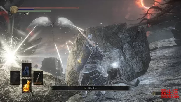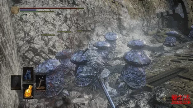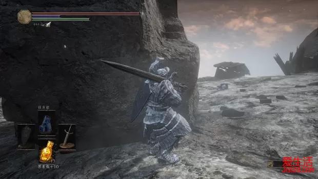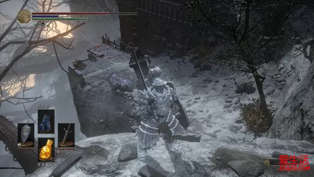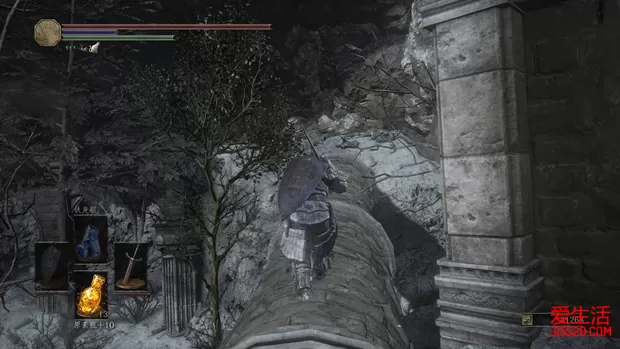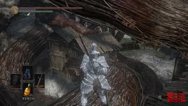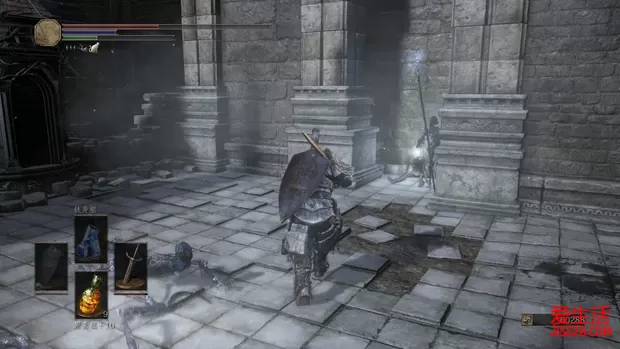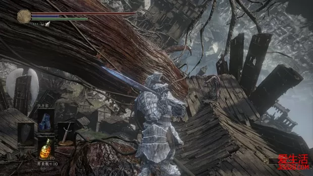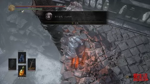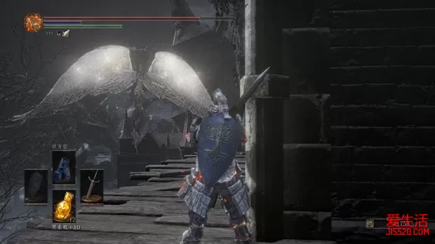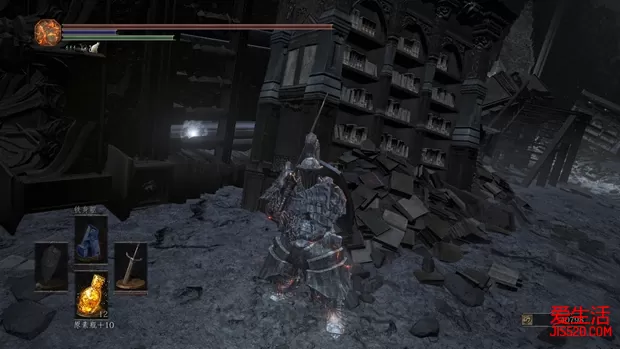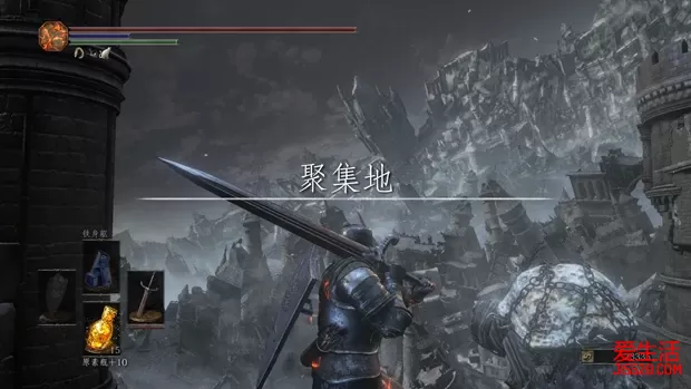 | 游戏评价/灰烬墓地(01) 洛斯里克的高墙(02) 不死聚落A(03) 不死聚落B(04) 活祭品之路(05) 幽邃教堂/净身小教会A(06) 幽邃教堂/净身小教会B/帕奇支线(07) 法兰城塞(08) 卡萨斯的地下墓地(09) 熏烟湖(10) 冷冽谷的伊鲁席尔(11) 亚诺尔隆德(12) 伊鲁席尔地下监牢/罪业之都(13) 洛斯里克城(14) 大书库(15) 妖王庭院/无主墓地(16) 古龙顶端(17) 初始的炉火/三个结局(18) DLC1/雪原/绘画底端(19) DLC1/鸦村/覆雪山径/苍蝇巢穴/修女和神父(20) DLC2/聚集地/推土塔(21) DLC2/环印城市街/沼泽地(22) DLC2/黑龙米狄尔/奴隶骑士盖尔(23) 相对于DLC1的设计,DLC2难度曲线更平缓一点,不存在DLC1那种很突兀的出现难度很高的区域,而是始终都挺难,但也都有机制可以解决。 进入DLC2环印城有两个方法,简单说,就是本体打通,或者DLC1打通都可以进去。 方法一:在DLC艾雷德尔绘画世界中击败最后的芙莉德修女后,教堂最内侧会多出一个篝火。触摸该篝火,即可进入DLC2的第一个场景聚集地。 方法二:在游戏正篇推进到与最终BOSS决战前会点燃初始之火的火炉。传送到该篝火,会发现后方坡下多出一个篝火。触摸该篝火,同样可以进入DLC2的第一个场景“聚集地”。 聚集地 传送到聚集地后别急着往外走,先点燃面前的篝火聚集地。 从篝火出来后会碰到NPC 背盖子的老妪,与之对话后能购买道具,其中包括了武器“半叶大刀”。在击败DLC最后的BOSS盖尔后,将能在该NPC处拾取到“老妪骨灰”。 聚集地中不少悬崖都是可以往下跳的,落地点都铺了厚厚的一层灰,不会产生掉落伤害。部分可以跳落的悬崖的地面上会有讯息提示,靠近后还会出现盖尔的幻影,指出跳落的方向.老妪身边就能直接往下跳,相对于从右边正常走下去,跳下去可以省去一段繁琐的战斗 下来后就会遇到聚集地最常见的杂兵,幽邃,幽邃有法师类型和近战类型,熟悉后难度不大。干掉旁边生成的幽邃后,不要去捡悬崖边非常明显的道具,那里会塌陷掉下去,而是回头上城堡的阶梯,上面有个哈兰得胖骑士,干掉后可以捡到蓝宝珠短剑。如果对付这个胖骑士苦手,可以尝试从台阶高处跳下来处决的方法。 然后就可以去悬崖边捡东西了,如同意料之中的,悬崖边的平台断裂,掉了下去。 下去之后想要捡东西的话要稍微慢一点,道具所在的地方会从地下爬出一个幽邃,抓住玩家的腿,类似阴险的设计还有很多。 这里回头有个龙鳞楔形石,过去捡的时候会从两边刷出两只幽邃伏击。下方闪闪发光的道具是光辉楔形石,同样会有幽邃突然出现 左侧倒塌的书架爬上去可以看到后面的道具,是濡湿小镰刀 清完这里的道具就可以出去了,一路前进到拐弯的地方,会看到远处有一个天使型敌人。这种飞在高空中的敌人会间隙性地发射光箭,伤害极高,被一轮光箭全部击中后基本会死亡。可以通过沿途的各种掩体来躲避光箭的射击。天使敌人虽然可以直接远程击杀,但依然会复活,想要彻底解决,必须击杀位于地面上与天使相对应的躯壳,击杀地面躯壳后就不会再刷新了。整个DLC2里有三个天使,后面会一一描述具体位置。 不要理会这里的道具和天使的攻击,一路冲刺进对面的屋子里,里面有个两个骑士,持剑的骑士速度快,长枪骑士速度慢,利用速度差分别击杀,捡完道具后出去。 从门口出来向右走,进入雕塑后面的房间,这里有一种会召唤幽邃的法师,必须要干掉这个法师,源源不断出现的幽邃才会停止。而这个法师目前的位置在隐藏门里,必须到最里面打开左侧的隐藏门,才能看到这个法师。清理掉建筑物里的敌人后注意这里有个濡湿长柄杖 从建筑物楼上的门出来,又会遇到一群幽邃,这些幽邃除了有个召唤法师,还会变身成黑雾魔法攻击,攻击力很高,及时翻滚躲避,这里可以捡到大块灵魂沉淀物 从旁边的阳台出来,踢落一个捷径梯子,然后从该处旁边的木板往下跳,能拾取到“贪婪银蛇戒指+3"。 从缺口落下,就到达刚刚两个骑士房间的门口,往下坡走,会发生石塔断裂的事件 继续往前,第一个天使的本体就在前方,干掉后得到光辉楔形石 前方是个下坡,下坡左边有个泥潭,泥潭里有个胖骑士,同时周围还会有幽邃爬出来搞突然袭击。 干掉这些敌人,从正前方边缘的落点落下(有盖尔的幻影提示),即可到达下一个篝火推土塔 点燃下一个篝火后,回头把这一段路再跑一遍,可以捡到因为天使攻击而捡不到的物品。其中最重要的物品,是在第一次遭到天使攻击时,左侧房子后面的狭窄模板尽头,那里是钢铁庇佑戒指+3,这枚戒指配合钢铁身躯魔法和哈维尔重甲,一周目可以和最终BOSS硬扛。同样是在第一次遭遇天使这里,跳下后回头有个女神的祝福不要遗漏。 继续往前,到两个骑士的房间,那个倒塌的石塔砸破了房顶,干掉骑士之后可以沿着倒塌的石塔爬上高处 在这里我们会遇到一个NPC,记忆丧失的拉普,他的支线任务还是挺重要的,不过一般不会错过,我们会在后面对他的剧情做详细跟踪说明 从拉普前方断层落下,干掉几个幽邃后,右侧可以直接跳下去 下面有个幽邃召唤师不断召唤幽邃,还有个长枪骑士巡逻。这个幽邃召唤师躲在两根柱子中间,非常阴间,干掉它后捡起释放恢复 从平台右边缺口跳下去击杀两个骑士,在通道里可以捡到灵魂和洛斯里克军旗。然后从提示处跳下去,再次来到推土塔篝火。 堆土塔残骸 前面见过拉普的话,这里就能再次见到拉普,他会告诉我们,沼泽地里有宝物。 对话过后,在左
