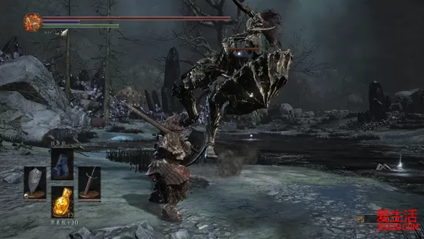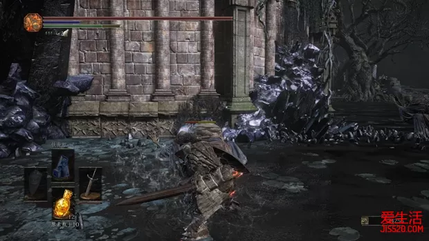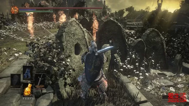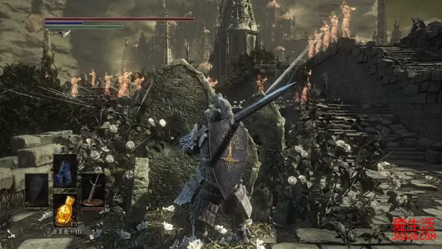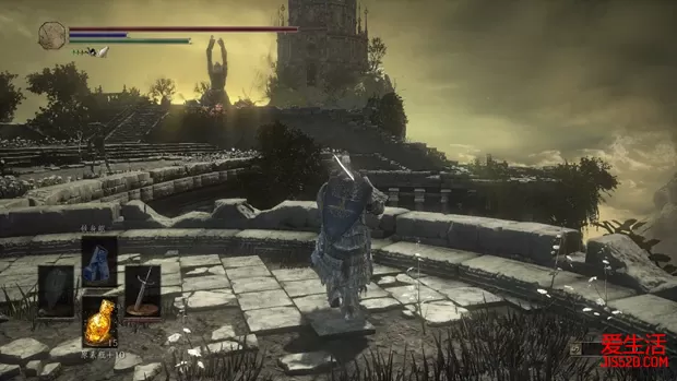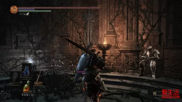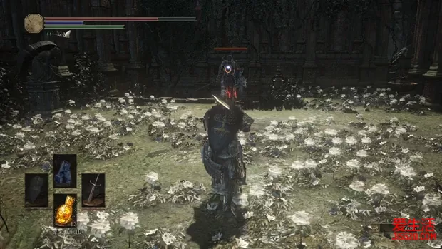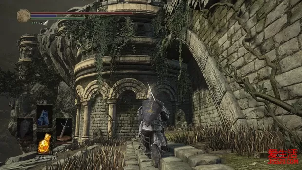 | 游戏评价/灰烬墓地(01) 洛斯里克的高墙(02) 不死聚落A(03) 不死聚落B(04) 活祭品之路(05) 幽邃教堂/净身小教会A(06) 幽邃教堂/净身小教会B/帕奇支线(07) 法兰城塞(08) 卡萨斯的地下墓地(09) 熏烟湖(10) 冷冽谷的伊鲁席尔(11) 亚诺尔隆德(12) 伊鲁席尔地下监牢/罪业之都(13) 洛斯里克城(14) 大书库(15) 妖王庭院/无主墓地(16) 古龙顶端(17) 初始的炉火/三个结局(18) DLC1/雪原/绘画底端(19) DLC1/鸦村/覆雪山径/苍蝇巢穴/修女和神父(20) DLC2/聚集地/推土塔(21) DLC2/环印城市街/沼泽地(22) DLC2/黑龙米狄尔/奴隶骑士盖尔(23) 环印城 传到环印城,回头捡龙鳞楔形石,然后下去点燃篝火。 再往下走,就会出现环印城里的特色景象,无数幻影弓箭手被召唤出来,对角色疯狂射箭。只有通过沿途的墓碑来躲避箭雨,把握好两轮召唤中的间隙时间快速前进。 这是因为在远处高台上有个教堂法官,在不停的召唤,想要接近这个教堂法官,就需要走一条隐蔽的小路。在下图位置向前走,就有可以跳下去的地方,下去后回头捡个道具,击杀前方一只宝石虫,就可以从尽头的梯子爬上来。 爬上来之后,就在教堂法官高台下面了,干掉两个靠近的骷髅,趁教堂法官攻击间隙直接冲上高台,就能攻击到教堂法官。 不过他依然会不断召唤幻影,这时候,就要借助平台角落的一块小石碑来躲避幻影的弓箭,然后等弓箭射完再出来打,很快就能击杀教堂法官。 但是注意,这些教堂法官在我们坐火以后还会再次刷出来,真是可恶,所以我们要趁此机会把周围的道具都清空,下次不来了。在到达环印城的第一个篝火王朝守卫所在的平台右边,有一个重要物品,虚空套装。 从教堂法官平台的后面楼梯下去,可以碰到一个能说话的怪物,这种类型的怪物叫做说客,其实就是长着人头的大蝗虫,后面还会遇到很多,不用理会它,继续一路往下,干掉几个埋伏的敌人后,进左边房间点燃篝火。 从篝火右边的门出去到阳台,可以再次看到拉普,和他对话,可以得到杰克的酒,旁边还有个道具 从房间另一边的门过去,同样干掉埋伏的敌人,下楼时会遇到一种会诅咒的敌人,这种敌人行动缓慢,建议在远处用弓箭击杀。 再往下走,就会遇到一个很硬的敌人,环印城骑士,这种骑士会给自己的武器加BUFF,一旦加了BUFF会变得很强劲,此刻别和他硬拼,等时效过去再打。击杀后在这个平台侧面有道具。 继续往前,会遇到一个巡礼龟,它会放法术,还会躲在壳里,只要上去砍它们一刀或者踹一脚,就可以把它踹翻。进入巡礼龟的塔楼,里面还有几只巡礼龟。注意这个塔楼有个夹层,跳到中间吊灯,再跳到对面夹层干掉一个巡礼龟,可以捡到光辉楔形石。 之后跳到塔楼下面,干掉一个长枪环印骑士,这个塔楼里一定要清理干净,因为我们要以此为基地,对付外面的哈兰得胖骑士 从刚刚塔楼出口出来,到达一个长长的巨大石阶楼梯,这时下面楼梯的桥上有环印城游魂朝我们放闪电,下面还上来三个哈兰得胖骑士 虽然与他们单挑时威胁不大,但成群胖子的乱刀可是相当恐怖。所以我们要在远处用弓箭一个个引诱,把他们引诱到塔楼里面来杀。在塔楼里面无论是一对一硬扛,还是利用楼梯台阶下落斩击,甚至引到楼梯上卡住胖骑士,让他下不来,都可以。 注意这里的哈兰得胖骑士有两批,随着我们阶梯的过程逐渐刷出来,所以战斗的时候请尽量用逃课的方法,节约资源。 清掉第一批哈兰得胖骑士后,往楼梯上坡方向走,在尽头能看见一道门,这道门现在是打不开的,里面是费莲诺尔的骑士希拉,站在门口和她多次对话,答应她打败米狄尔,并且答应不去打扰公主,就可以获得重要物品费莲诺尔圣铃。此外这个门左边还有个道具和埋伏的敌人 环印城市街 从阶梯往下走,会看到楼梯上的一座天桥,从右侧上桥,干掉围攻的环印城杂兵,并朝深处区域前行,这里有一个环印城骑士守着,在尽头还会遭遇暗灵“探寻禁忌”的入侵。将之击败后能获得狼戒指+3,在其出现地点的后方能获得“黑魔女套装”。 继续沿着主阶梯往下,在最下面又会刷出一批哈兰得胖骑士,可以引诱上来用地形杀,也可以暂时不理他们,注意台阶右侧,有个发出昏暗灯光的门,这里是个重要地点,关系到后期的支线,现在可以进去探索一下。 这里有很多杂兵埋伏着,有些挂在墙上,其中还有会放诅咒的,慢慢推进都干掉,到里面干掉环印城骑士,可以捡到一个环印骑士枪 从左边过石桥,会遇到第二个会说话的说客蝗虫怪,它还会提到一个杀害双亲的可怜女孩也接受了深渊的拥抱,薄暮和月亮也无法给予她那种安稳的感觉,这里说的是希里丝。 这时候如果原素瓶不够,可以从高台跳下去,一路向右冲到台阶上的建筑物里面,篝火就在那里。 我们从说客这里继续,往前面的高台跳下去,在最右侧会看到一个长长的梯子,这里还有三只巡礼龟。 从梯子爬上去,可以看到一座石桥,石桥上有一个宝石虫,还有两个环印骑士守着。一个个引过来干掉,到对面的房间里会再次遇到拉普,他会向我们询问解咒石的位置。此刻我们也没有找到,所以只能回答还不清楚。拉普旁边有个贪婪金蛇戒指+3。 出来回到桥对面,可以看到对面有个向上的山坡,顶端有个门,跳过去后进入门里面,如果处于余火状态,会遭到暗灵“银骑士雷多”的入侵,将之击败后获得雷多大锤。 捡完道具后从房间出来,房门正对的缺口,往下看能看到很多层平台,一路往下跳,注意回头看,在角落可以捡到