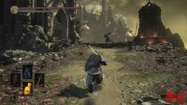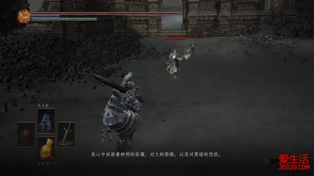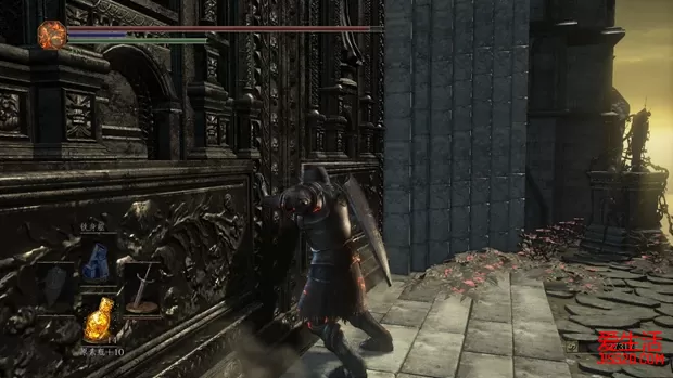 | 游戏评价/灰烬墓地(01) 洛斯里克的高墙(02) 不死聚落A(03) 不死聚落B(04) 活祭品之路(05) 幽邃教堂/净身小教会A(06) 幽邃教堂/净身小教会B/帕奇支线(07) 法兰城塞(08) 卡萨斯的地下墓地(09) 熏烟湖(10) 冷冽谷的伊鲁席尔(11) 亚诺尔隆德(12) 伊鲁席尔地下监牢/罪业之都(13) 洛斯里克城(14) 大书库(15) 妖王庭院/无主墓地(16) 古龙顶端(17) 初始的炉火/三个结局(18) DLC1/雪原/绘画底端(19) DLC1/鸦村/覆雪山径/苍蝇巢穴/修女和神父(20) DLC2/聚集地/推土塔(21) DLC2/环印城市街/沼泽地(22) DLC2/黑龙米狄尔/奴隶骑士盖尔(23) 公墓 一路跑到对面,进入公墓的塔内,在进去之前,可以趁背后火龙喷火的间隙,到右边拐弯下坡,最下面有龙鳞楔形石 刚进入公墓环塔,就能看到上面有个宝石虫,不过冲过去的时候地面会塌陷,还得把这里重新跑一遍。直接走正确的路,首先选择回头,进入后面的房间,如果前面告诉拉普解咒石的位置,此刻就会再次遇到他,但当他把头盔摘下来,原来就是喜欢踢人的帕奇。 帕奇告诉我们,在外面有个宝物,当我们再次去边缘观察的时候,帕奇的老毛病又犯了,他又一脚把我们踢下了悬崖。 不过不用担心,这是正确的路,往前走,从断层处落下,回头可以捡到一个祝福宝石,然后往上走左边第一个房间里有宝箱怪,击败后获得邪眼戒指+3 继续往上进入第二个房间,击杀里面的骷髅之后从里面的石阶往上走,可以到达公墓里篝火的位置。在篝火这里刷新一下,出去到环形石阶上就可以看见一开始引诱我们的宝石虫,此刻正在下面。追击这个宝石虫,然后和它一起掉下去,这里会有暗灵“呻吟骑士” 的入侵,击杀后便可获得覆眼面具 石阶沿途的房间里有雷电宝石,愚人宝石等,到尽头落下,再次来到帕奇的房间,可以捡到拉普的套装。 传送回公墓的篝火,从另一边的门出来,这里会再次遇到黑龙米狄尔,而且要和它正面作战。有攻略建议直接跑路,其实完全没有必要,因为黑龙前方左侧的石块角落是安全地点,站在这里可以躲过米狄尔的所有攻击,因此,找到它的破绽打两下,再躲回安全地点,如此循环,可以确保击败米狄尔。当然,米狄尔还没有死,我们后面还会再遇到他。 击败米狄尔之后,过桥到对面房间内,左边石阶上有宝石虫。 注意这里一楼楼梯右边有个隐藏房间,击破后里面有一只巡礼龟,后面还紧接着两层隐藏房间,最后是奇迹雷电箭 捡完道具从石阶往上,到达葛温雕像房间,雕像上的道具后面才能捡到,先乘电梯,打开到环状墙内部篝火的捷径。 注意,捷径电梯井里有一个夹层,从上面看是下图这样的。 在电梯升降的时候进入夹层,往右边走可以看到一个坑,坑下面就是葛温雕像,找准位置掉下去,就可以捡到绿花戒指+3。其实这个电梯夹层的秘密还不止这些,隐藏BOSS吞噬黑暗的米狄尔也从这里进,我们一会儿再去。 休整后回到葛温雕像房间,从大门出去,会遇到一个双手持大剑的环印城骑士,相对于前面的环印城骑士,这个双持大剑也没有特别厉害,击败后可以获得环印骑士成对大剑 这里还有个圣枪石碑,需要奉献仪式枪的碎片,石碑背后就有一个,其他的要靠联机击退侵扰公主安眠的人,或者环印骑士掉落 现在,正前方就是最后的费莲诺尔教堂了,此刻教堂的门是关着的,左侧下面有光辉楔形石。但是现在还不是进入最终BOSS战的时候,如果我们打扰了公主,就拿不到楔形石圆盘了,所以我们要先去把隐藏BOSS米狄尔打了。 再次从捷径电梯的夹层进去,这次往左边走,进入一个房间,房间的四具骑士像中,有一具骑士像没有持剑,攻击该骑士像即可打开隐藏门。 从隐藏门进去,从梯子一路下去,在下面的房间捡到古式便服、紫布腕套,前面就是通向隐藏BOSS吞噬黑暗的米狄尔的深坑。在下去之前,可以在房间里召唤一个帮手费莲诺尔的骑士希拉,但这个NPC聊胜于无,还容易打乱节奏,不推荐召唤。 吞噬黑暗的米狄尔 对于有的玩家来说,吞噬黑暗的米狄尔也许就是本作最强力的BOSS。但其实该BOSS的强力并非是招式有多丰富,只是单纯数值层面上的强罢了。 BOSS虽然只有两个阶段,但招式挺多,无论是攻击力、防御力亦或者生命值都相当之高,在高周目时几乎任何招式都能秒杀角色。再加上BOSS的体型巨大,使得招式的范围也相当之广。如果是近战角色,锁定并靠近BOSS时还可能会出现视角混乱的问题。 正确的打法,是站在黑龙米狄尔的前方,保持一定距离,常见的龙车、五连爪击、两连爪击、撕咬投技都可以用翻滚躲过,其中撕咬投技建议向后翻滚,躲过之后就可以砍一两刀。为了确保翻滚的无敌时间,建议这里控制一下装备的负重,对于战士而言,舞娘套还不错 而BOSS的喷火和大招苍白火焰的扫射就纯属白给了,这两招可以说毫无威胁,摇头晃脑的喷火只要向一边跑就行,喷火接大招苍白火焰,只要向BOSS的左前方跑,就完全打不着,喷完苍白火焰后还可以追上去砍一两刀。注意,在BOSS进入二阶段时,会蓄力对周身范围造成爆炸伤害,别贪刀。二阶段灵魂追踪射击时向后翻滚即可躲开大部分攻击 总体而言,只要熟悉招式,灵活走位,抓住时机,不要贪刀,便能确保胜利。 在击败吞噬黑暗的米狄尔之后,回到环印城市街,再次来到石阶最上方,那个关着大门的地方,和里面的费莲诺尔的骑士希拉对话,会得到一个楔形石圆盘,这是DLC流程里的第五个圆盘 教堂之枪 现在,让我们打开费莲诺尔教堂大门,进入最后的场景。 教堂大门前,