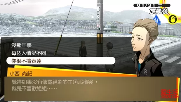 女神异闻录4黄金版一周目全社群等级MAX攻略/游戏评价/系统 4月 5月 6月 7月 8月 9月 10月 11月 12月 1月 2月/3月 愚者 魔术师 女教皇 女皇 皇帝 教皇 恋爱 战车 正义 隐士 命运 力量 倒悬者 死神 节制 恶魔 塔 星星 月亮 太阳 审判 小丑 永劫/世界 要点:①尚未获得读书奖杯的情况下,将晚上标注的自由行动时间,全部用来读书,直到获得相关奖杯。②11日以后与社群等级MAX的同伴待在一起,能够让人格面具转生进化。 1/1雪 恋人会前来邀请一起新年参拜(玛丽除外),与谁一起去都无所谓。晚上与堂岛对话可以获得压岁钱30000元。 1/2雪 新年打招呼事件。前往天鹅绒房间,选择“不由自主就过来了”、“她为什么不见了?”“玛丽去哪里了”和“即使危险也想去”,开启隐藏迷宫“空洞之森”。 1/3雪 制订滑雪计划,小熊暂时搬过来住。晚上有玛丽的告别事件。 1/4雪 阳介、雪子看病事件。时间进展到1月6日。 1/6雪 完二、理世、直斗看病事件。时间进展到1月9日。 1/9雪 满足开启“空洞之森”条件时,玛格丽特打来电话。“空洞之森”将会在2月13日开放。 1/10雪 早上获得服装“八十神高中制服·深冬”。上课时选择“扇子”提升“知识”。放学后前往篮球社,让社群“力量”等级提升至MAX。晚上自由活动。 1/11雪/阴 在持有“倒悬者”的人格面具的前提下,前往商店街北部小西酒店前,与小西对话,选择“聊自己的失败经验”和“去骂她们”,让社群“倒悬者”等级提升至3。晚上制作便当,选择“橄榄油”可以获得“意式饺子”(累积次数获得奖杯)。 1/12阴 邀请任意同伴吃便当,增加感情。在持有“倒悬者”的人格面具的前提下,前往商店街北部小西酒店前,与小西对话,选择“反驳阿姨”和“不是尚纪的错”,让社群“倒悬者”等级提升至4。晚上自由行动。 1/13雪 在持有“倒悬者”的人格面具的前提下,与小西对话,第一项选择“很好的想法”,让社群“倒悬者”等级提升至5。晚上在持有“倒悬者”的人格面具的前提下,前往神社抽签,选择“小西早纪之弟的社群”。 1/14雪/阴 上课选择“葬送恶魔”提升“知识”。放学后在持有“节制”的人格面具前提下,前往安亲班打工,第三、四项选择“彼此彼此”和“没那回事”,让社群“节制”等级提升至7。晚上自由行动。 1/15阴 白天前往武器店,与店主闲聊获得“久乃的来信”。然后前往河边与久乃对话,让社群“死神”等级提升至8。晚上自由行动。 1/16雪 放学后在持有“节制”的人格面具前提下,前往安亲班打工,让社群“节制”等级提升至8。晚上制作便当,选择“美乃滋”可以获得“浓稠的明太子意大利面”(累积次数获得奖杯)。 1/17雪 邀请任意同伴吃便当,增加感情。在持有“倒悬者”的人格面具的前提下,与小西对话,第二项选择“不要撒娇”,让社群“倒悬者”等级提升至6。晚上自由行动。 1/18雪 在持有“倒悬者”的人格面具的前提下,与小西对话,选择“不用在意”和“只能先行动”,让社群“倒悬者”等级提升至7。晚上自由行动。 1/19阴 上课选择“猫”可以提升“知识”。在持有“倒悬者”的人格面具的前提下,与小西对话,第二项选择“对你放心不下”,让社群“倒悬者”等级提升至8。晚上自由行动。 1/20阴/雪 菜菜子正式出院。晚上自由行动。 1/21阴 在持有“节制”的人格面具前提下,前往安亲班打工,提升社群“节制”的感情。晚上自由行动。 1/22雪 朱尼斯的出院庆祝活动。晚上自由行动。 1/23雪/阴 放学后在持有“节制”的人格面具前提下,前往安亲班打工,让社群“节制”等级提升至9。晚上制作便当,选择“弱火不煮沸”可以获得“美味关东煮”(累积次数获得奖杯)。 1/24阴 邀请任意同伴吃便当,增加感情。放学后与教学大楼1F走廊的雪子对话,一起度过,让其人格面具转生。晚上自由行动。 1/25雪/阴 上课选择“红色”可以提升雪子感情以及“表达力”。放学后与教学大楼1F走廊的直斗对话,一起度过,让其人格面具转生。晚上自由行动。 1/26阴/雪 放学后与实习大楼1F走廊的完二对话,一起度过,让其人格面具转生。晚上制作便当,选择“冰牛奶一次加进去”可以获得“浓~稠奶油炖菜”(严格按照攻略的话,此时获得奖杯)。 1/27雪 邀请任意同伴吃便当,增加感情。放学后与教学大楼1F走廊的理世对话,一起度过,让其人格面具转生。晚上自由行动。 1/28雪/阴 放学后与顶楼的千枝对话,一起度过,让其人格面具转生。晚上有辅导菜菜子功课的事件,选择“不陪她念书”,保证1月28日、29日和2月4日晚上的自由时间。接下来自由行动。 1/29阴 白天前往河边与久乃对话,让社群“死神”等级提升至9。晚上自由行动。 1/30阴 上课选择“PB”可以提升“知识”。放学后与教学大楼2F走廊的阳介对话,一起度过,让其人格面具转生。晚上自由行动。 1/31雪 在持有“倒悬者”的人格面具的前提下,与小西对话,第一、三项选择“你很不擅表达”和“尽情哭个够吧”,让社群“倒悬者”等级提升至9。晚上自由行动。 |