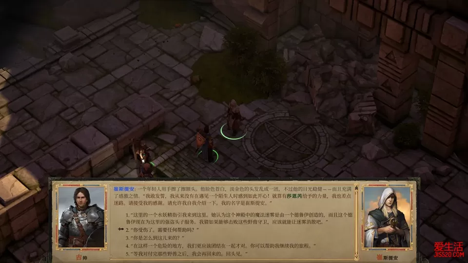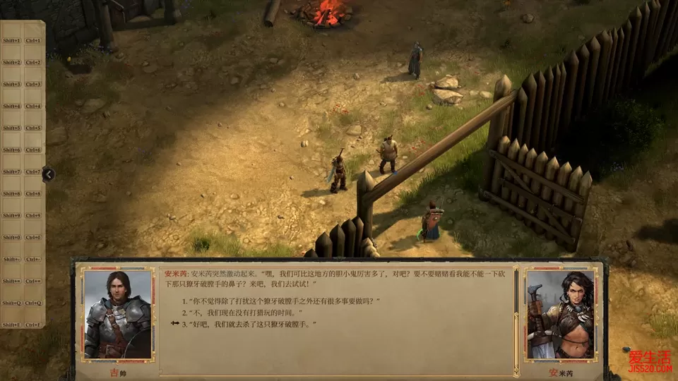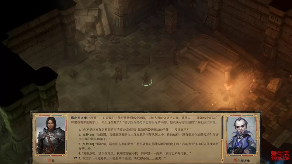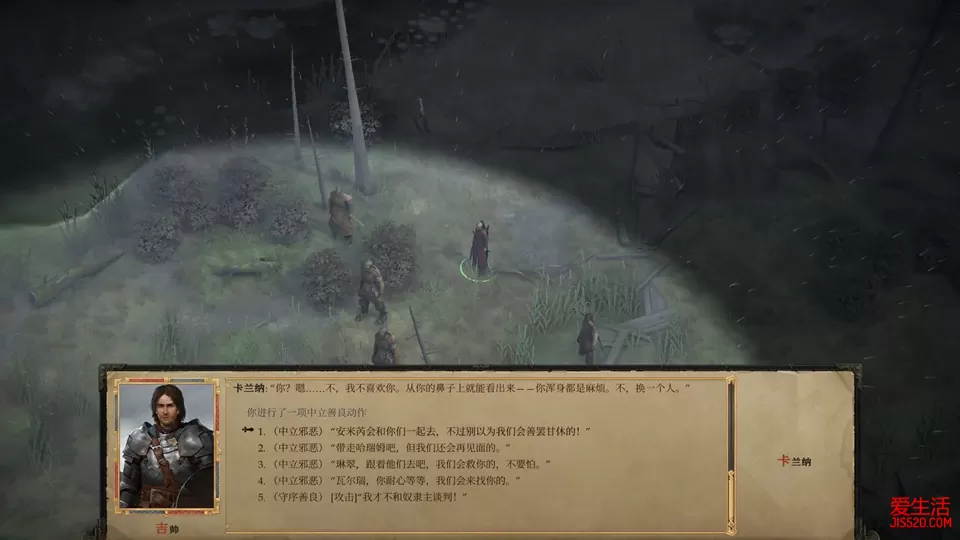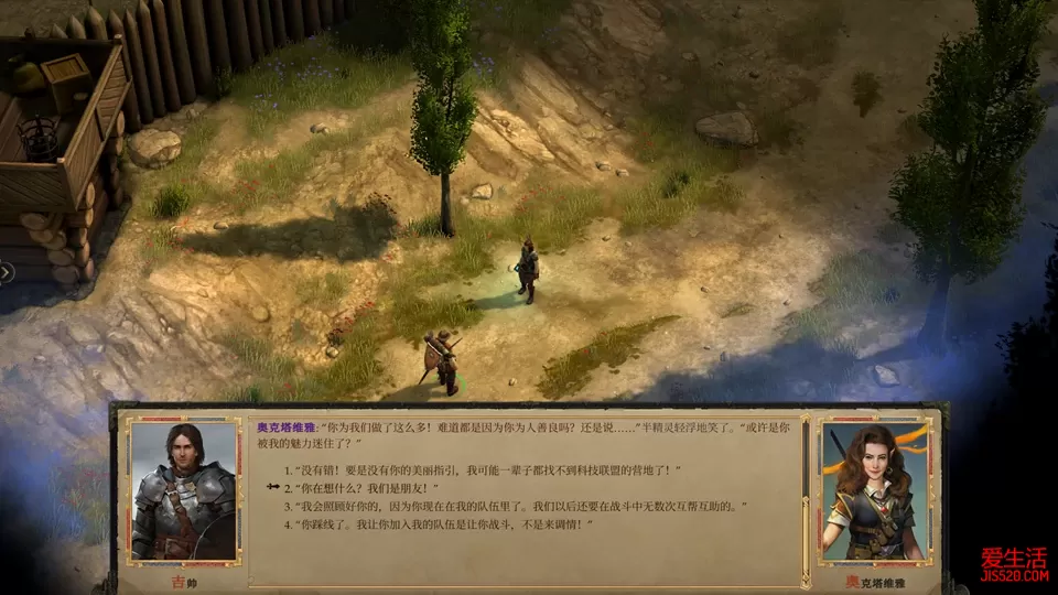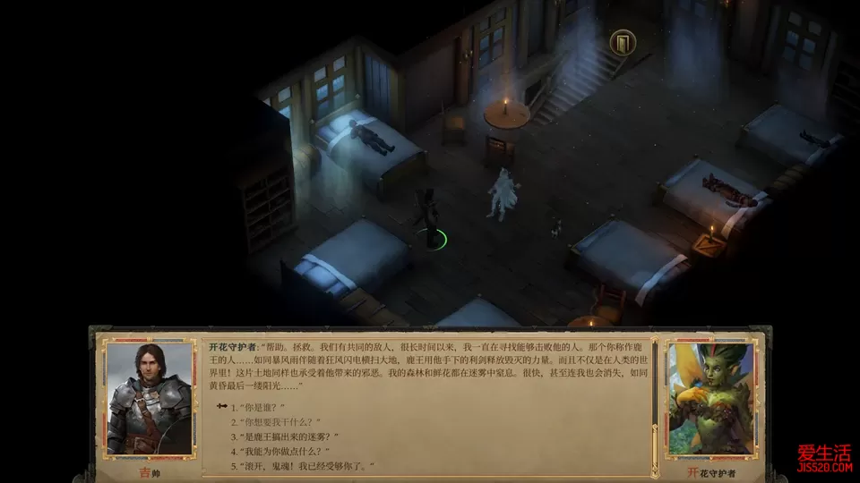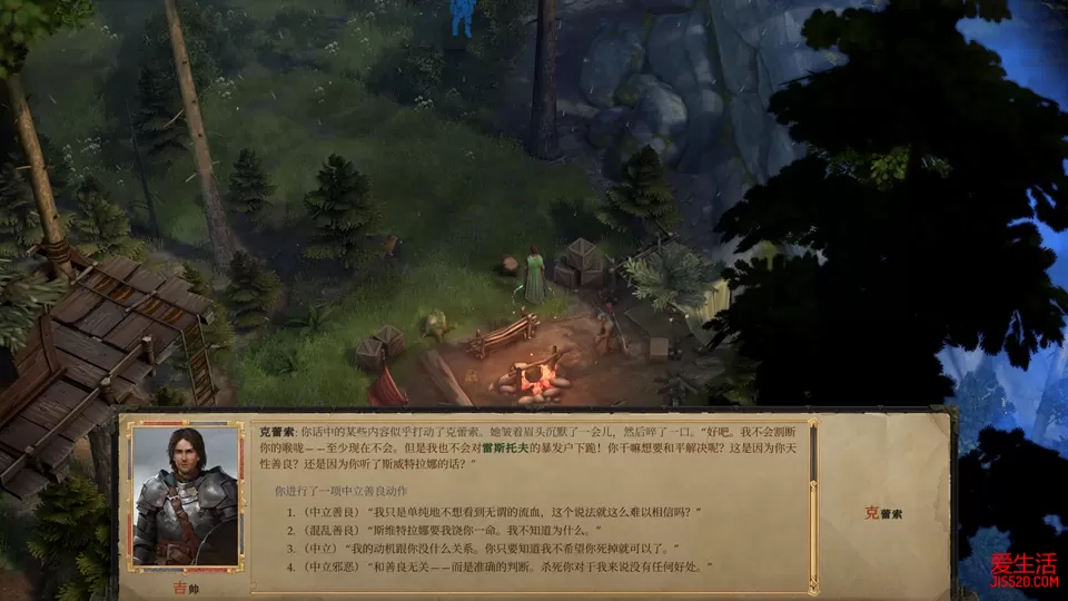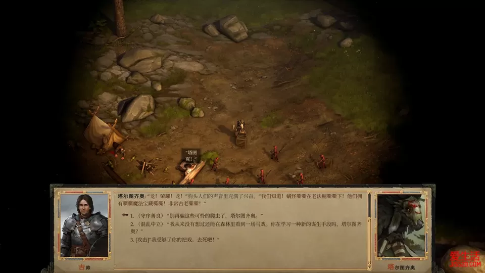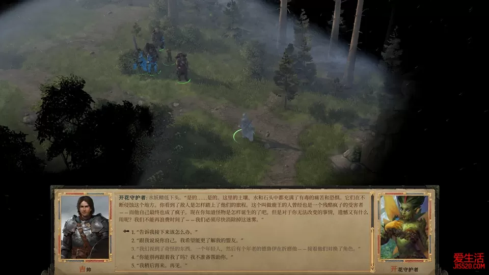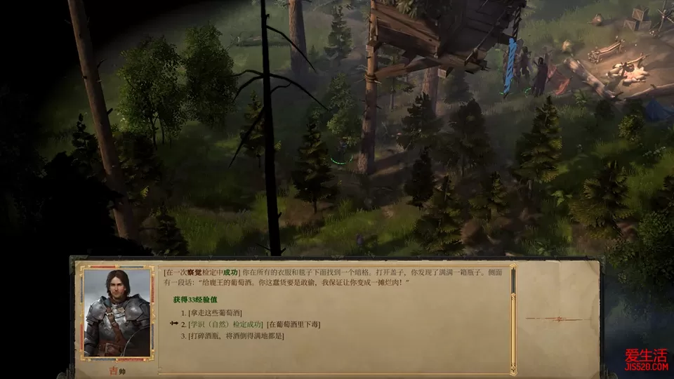 | 游戏评价/序章 踏上荣耀的第一步 第一章 失窃之地(1) 第一章 失窃之地(2) 第二章 巨魔之乱(1) 第二章 巨魔之乱(2) 第二章 巨魔之乱(3) 第二章 巨魔之乱(4) 第三章 开花季节(1) 第三章 开花季节(2) 第三章 开花季节(3) 第四章 瓦恩领失踪事件(1) 第四章 瓦恩领失踪事件(2) 第四章 瓦恩领失踪事件(3) 第五章 重生的军阀(1) 第五章 重生的军阀(2) 第五章 重生的军阀(3) 第六章 河流诸王之战(1) 第六章 河流诸王之战(2) 第六章 河流诸王之战(3) 第七章 无尽哭号之声 第八章 被诅咒的国王 第一章 失窃之地 带着领主的任务,队伍离开了城堡,沿着一条单独的路向前走,路上有随机敌人的教学,继续往前会到达一个叫做欧莱格贸易站的地方,这是我们第一章的落脚点。一进去,就看到一群匪徒在向贸易站商人欧莱格打劫,作为善良阵营,当然要帮助他击退敌人,不过敌人还有第二波,在和商人对话迎战第二波敌人前,可以在周围探索一下 左边有沥青的罐子和一箱捕猎陷阱,点击之后互动,就可以铺在地上,然后再和商人对话迎战敌人。 之后在这个贸易站二楼睡一觉,晚上一个叫开花守护者的女精灵出现,向我们控诉邪恶力量对森林的侵蚀。 注意,这个开花守护者是有隐藏结局的,如果想走隐藏结局,每次和她对话都要对她阿谀奉承,最后可以和她恋爱,本攻略会详尽的记录每一个步骤,按照本攻略进行就会导向这个隐藏结局,前期对话里,友好的选项和不友好的区别很明显,不需要一句一句的提示,攻略里就不详述了,后期揭示真相之后,有些重要对话确实难以分辨,届时会一一提示 第二天离开旅馆,和旅馆女招待对话,她会委托一个任务给我们,帮她找回被强盗夺走的结婚戒指,并特意强调,让我们饶恕一位手持双斧的黑发女强盗,这个任务虽不起眼,但对第一章结局很关键。旅馆里还有一位叫八眼的女士,她可以为我们招募雇佣兵,就是自创队友,还可以给队友洗点,如果想要研究不同职业Build就可以找她 出门之后,和一开始逃跑的那位博肯交谈,他除了卖给我们各种道具,包括一本任务用的书,《论变化与作用于肉体的毒素》第二卷,后期任务是把一套书交还给他。此外还会发一个任务,找到两种植物,这个任务我们会在后面说 现在可以离开贸易站了,同样是按照线路前进,沿途会发现可以进入的地区,不过要注意,发现这些地区的概率和人物的察觉技能相关,如果队友察觉技能不高,有时候要换人来,或者升级后才能发现这个地方。在我们前往第一个任务目标荆棘滩的路上,会出现一个随机地图,里面有个神神叨叨的人,会告诉我们塔尔图齐奥的位置,在南面的古墓,很好,现在我们向这个古墓前进。 到古墓里,发现塔尔图齐奥果然在这里寻找着什么,两名未来的队友耶萨尔和哈瑞姆跟在他后面,不过这两名队友已经发现塔尔图齐奥有点问题,所以我们可以任意选择一名队友来说服,说服必然成功,另一位没有说服的队友,会在老法桐树的深处找到,并且在第二章加入。 随便选择一名队友说服,然后干掉这群土匪,塔尔图齐奥则跑掉了,注意,其中一名土匪的尸体上有一个重要道具烧焦的项链碎片(1/7),本章共有七个这样的碎片,收集齐之后可以在幕间找说书人合并成强大的装备,另外,凡是标记有古董商喜欢的物品,不要卖给普通商人,幕间的说书人会给大量回报,是我们赚钱的主要方式之一 离开之后,会有文字冒险说明,让我们追踪塔尔图齐奥,如果检定能成功,就会提示我们塔尔图齐奥出现在南面的松树林 进去之后发现了令人惊讶的一幕,塔尔图齐奥居然伪装成一个狗头人酋长,正在鼓动一群狗头人跟他夺取某种宝藏,当他发现主角一行人追上来之后,就会逃跑,留两个狗头人断后。 注意,必须要触发松树林的剧情,在老法桐树那里才能继续推进剧情,如果刚刚在文字冒险里没有追踪到塔尔图齐奥的位置,就必须自己找到松树林,否则到老法桐树那里就会空空如也。此外, 不过老法桐对现在的我们而言还是有点太难了,这条线推进到这里,我们就继续另一条线,前往荆棘滩。荆棘滩在地图上已经标明,可以轻松到达,这里有一群土匪,但是这里的选择关系到本章的结局,所以一定要注意。首先,我们要友善的和土匪对话,并询问土匪的领头人克蕾索和旅馆的女招待斯维特拉娜是什么关系,她不会说什么,但是会留下女招待的结婚戒指,然后带着她的人离开。只要如此选择,在本章结束时,她就会带着人帮我们打鹿王。 在土匪的营地里,有个被绑起来的人,是牧师约德,把他放了,他会在后面王国建设时帮助我们。在营地里还可以找到一封信,信里是鹿王让克蕾索带人去烧毁废弃小屋,这说明废弃小屋里肯定有些什么东西,那就是我们的下一个目标。 别急着走,营地左侧有一个被帆布盖住的箱子,里面是给鹿王的酒,和这些酒互动,如果有幸通过检定,就可以给鹿王下毒,会让最后的BOSS战更加简单。结束之后,依然不要离开这张地图,因为这张地图左边还有一个重要道具烧焦的项链碎片(2/7),找到后再离开。 现在,我们可以前往下一个任务目标地点,废弃小屋了,进去之后,会发现开花守护者在等着我们,还是老样子,用尽阿谀奉承的选项,和她打好关系,以便进入隐藏结局 这里的左下角可以找到一份笔记,这是说明如何打开废弃小屋里那个箱子的方法。 沿着路前进,会看到很多过去的影像,都是鹿王与他父亲在成长中的纠葛,这也解释了鹿王为什