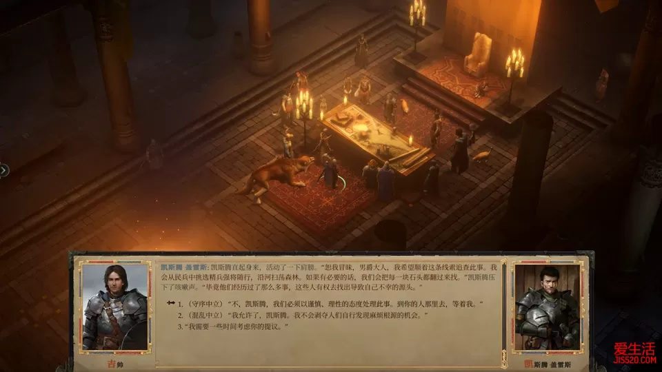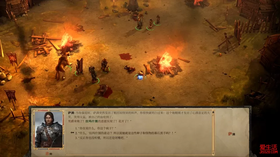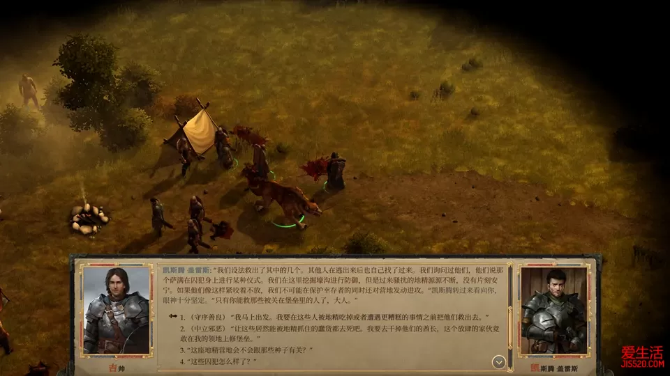 游戏评价/序章 踏上荣耀的第一步 第一章 失窃之地(1) 第一章 失窃之地(2) 第二章 巨魔之乱(1) 第二章 巨魔之乱(2) 第二章 巨魔之乱(3) 第二章 巨魔之乱(4) 第三章 开花季节(1) 第三章 开花季节(2) 第三章 开花季节(3) 第四章 瓦恩领失踪事件(1) 第四章 瓦恩领失踪事件(2) 第四章 瓦恩领失踪事件(3) 第五章 重生的军阀(1) 第五章 重生的军阀(2) 第五章 重生的军阀(3) 第六章 河流诸王之战(1) 第六章 河流诸王之战(2) 第六章 河流诸王之战(3) 第七章 无尽哭号之声 第八章 被诅咒的国王 救下诺克诺克后,得知地精们现在崇拜一个叫拉玛什图的神祠,神祠的位置在地图最下方也标识了出来。 往拉玛什图的方向出发,如果现在已经建好蔓生小径小镇,可以顺路去一趟,这里有两个独特的工匠,瓦罗斯克(特殊工匠4号)和那兹瑞尔(特殊工匠5号),和他们两人对话,可以接到他们的工匠任务,瓦罗斯克会让我们为他找到工具,他的工具在北纳玛洛斯建立的新据点塔滋索尔滩,如果还没有占领这个区域,这个工匠任务就往后放一放。 路上还会经过一个叫狼穴的地方(见上面的地图),里面有大量的狼,难度不大,重要的是这里有个融化的戒指碎片(8/13) 最后进入拉玛什图的神殿,进去的时候会看到凯斯腾已经等在这里了,不过大概率进去的时间不对,任务无法开始,这时候只有退出地图,宿营度过一天,再进去和凯斯腾对话,这样反反复复,直到某一天,凯斯腾决定趁邪教徒祭祀时突袭。这个时机基本上是一周的某一天,所以最多等待七天。 袭击邪教徒之后,别忘了在旁边的小箱子里获取融化的戒指碎片(9/13),之后就会看到有个邪教徒逃走了。 进入文字冒险,追踪到这个邪教徒逃进了附近的清净小屋。进入小屋搜查,和老板对话获得钥匙,一个房间一个房间的调查,和所有人对话,全部结束后回到中间的凯斯腾处,说出怀疑对象,一个叫苍娜的女性,苍娜果然奋起反抗,不过被打倒。这时候选择很重要,一定要选择中立或者善良,然后放她走,她会回到刚刚的拉玛什图神殿,去和她对话,可以说服苍娜成为我们的顾问,苍娜还是很好用的。 之后回到城堡,队员们纷纷前来汇报获取的信息。这场瘟疫的似乎沿着一条河流爆发,凯斯腾提议带着守卫去调查,劝他冷静一点,等主角的队伍一起到了再调查。 这时林翠可能会前来,希望给艾昆达尤举办一场宴会,当然也可能更早就获得了这个任务。如果我们建好了蔓生小径的独特工匠建筑,那兹瑞尔的助手也会前来开启下一步任务。 离开城堡,居民们害怕的几乎要暴动了,用善良的选项劝说他们。然后去酒馆,和旅店老板艾莉娜商议举办宴会的地点,最终确定在户外,就在本章一开头的狩猎场里。 进入狩猎场,右边两张桌子和火堆那里就是宴会场地,开始后和所有人对话,和艾莉娜要一瓶酒,送给恩塔维,发现艾莉娜和恩塔维两人都在暗恋艾昆达尤。尽量选择善良的选项,但艾昆达尤的命运要由他自己决定,最后艾昆达尤会给自己的狼取个名字,叫欧克博 结束后回到城堡去建设王国,如果可以建设法师塔之类的高级建筑就尽快建,奥法升到一定等级后会开启新的顾问栏,并且有些诅咒一定要奥法达到一定级别才能研究。还记得前面我们放走的伊瓦尔吗?这时候会有个事件和他有关,研究过就能发现伊瓦尔的位置。 管理好王国后离开城堡,出发前记得带上诺克诺克,向东走一点点就会看见地精城堡这个地标,进去后会发现凯斯腾已经带着守卫在调查这里了,这里的选择会关系到凯斯腾的结局,毫无疑问选择守序善良的选项。 首先在帮助凯斯腾击退地精之后,了解到地精逼迫这里的人类喝河里的水,而河水受到了种子的污染,就是人体变异成怪物的原因。这时会面临如何应对这些被感染的人类,一定要选择善良选项,全部救下来,包括后面遇到被地精关押的人,也全部救出来。 往前走不久,在一个被关押的人旁边有个箱子里面有融化的戒指碎片(10/13)。然后选冲上去干掉地精,救下被逼迫的人类。地图右侧边缘有个隐藏箱子,里面有骑士护手碎片(9/10)。 中央有好几个被关押的人,其中有一个人骗了其他人,选择善良选项,把他也放了。路上遇到的人类放回去,答应给他们治病。 在左侧的地精营地里干掉一群地精,其中的头领会掉落融化的戒指碎片(11/13)。 最后往下是一群祭祀的地精,如果带上了诺克诺克,这里就会有互动的对话,激励诺克诺克,帮助结局时诺克诺克转变为地精英雄,当然,没带也没关系,最后诺克诺克个人任务里的点数足够了。干掉这些地精,地精头领临死前提到一个叫拉玛什图的子宫的地方,这就是我们的下一个目的地。 把地精全部清完之后回到开始的位置,发现很多救下来的人类都变异了。干掉这些变成怪物的人,然后和凯斯腾对话,他主动提出去拉玛什图的子宫调查。这时要选择守序选项,让凯斯腾回去守城,这样可以确保凯斯腾在结局中活着。 回去时走蔓生小径走一趟,那兹瑞尔会说他的装备被徒弟偷走了,答应他帮他找回来,他的徒弟就在古德林河桥的上半部分,左侧悬崖上,正在被几个怪物围攻,救下之后拿回那兹瑞尔的装备,会发现是一个受诅咒的装备。再回蔓生小径质问那兹瑞尔,等待任务的下一步。 这时的古德林河桥南部可能会有个假装成鹿王的人在收保护费,当然也可能更早的时候来解决过了。 注意,这时候回主城是无法休息的,因为主城里有大量无辜的人变异成