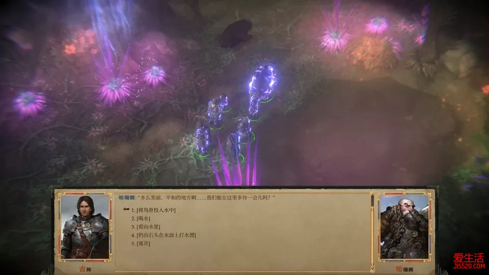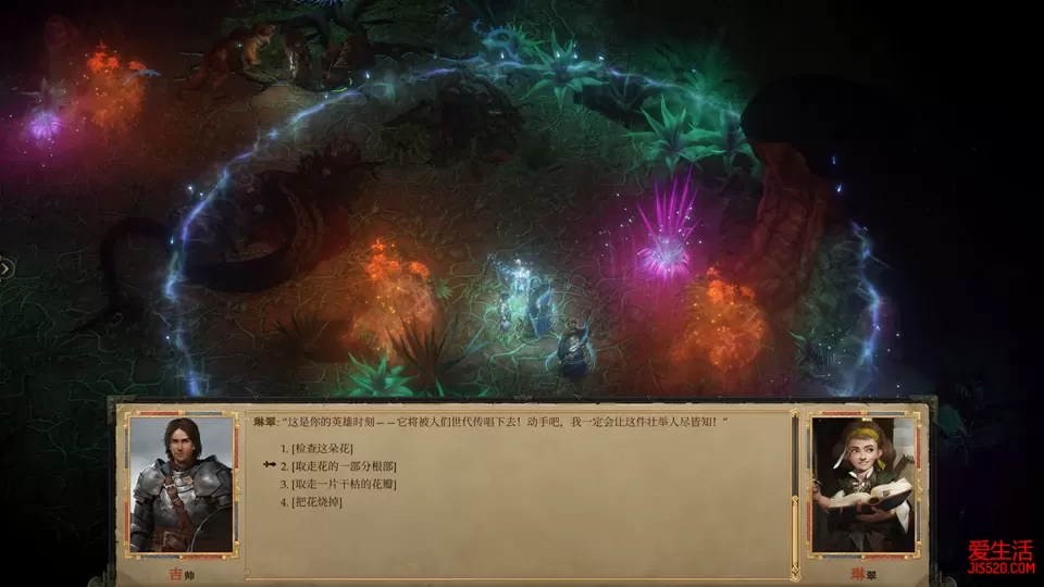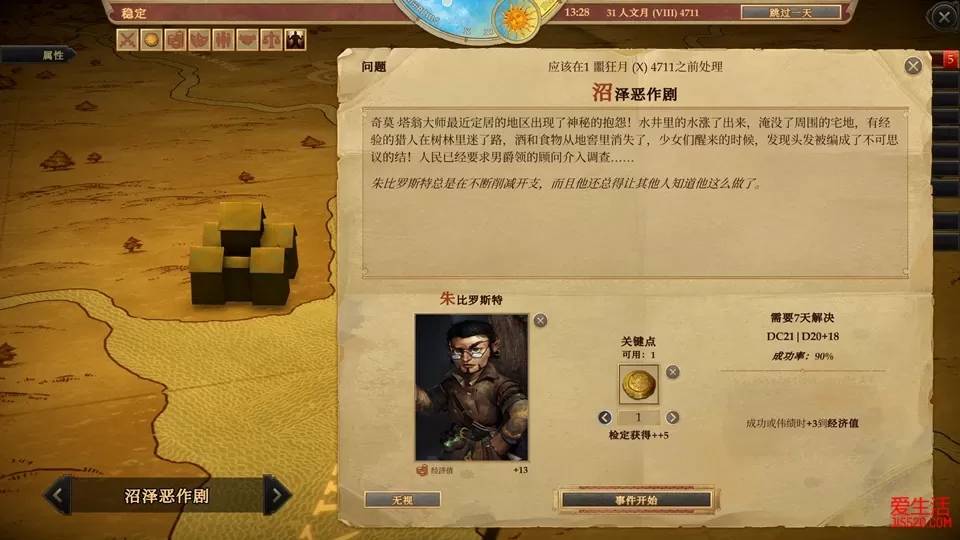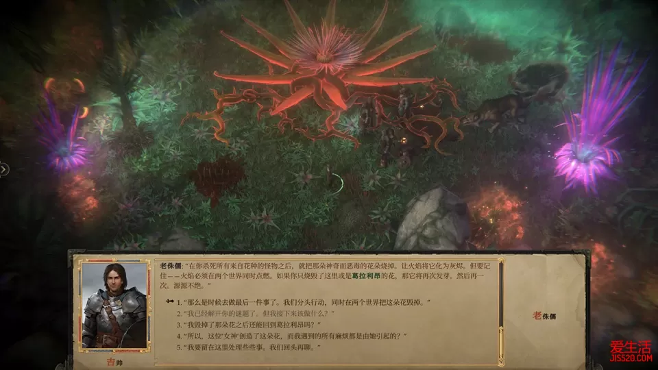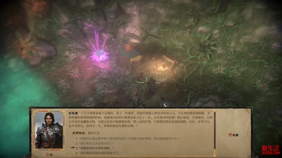 游戏评价/序章 踏上荣耀的第一步 第一章 失窃之地(1) 第一章 失窃之地(2) 第二章 巨魔之乱(1) 第二章 巨魔之乱(2) 第二章 巨魔之乱(3) 第二章 巨魔之乱(4) 第三章 开花季节(1) 第三章 开花季节(2) 第三章 开花季节(3) 第四章 瓦恩领失踪事件(1) 第四章 瓦恩领失踪事件(2) 第四章 瓦恩领失踪事件(3) 第五章 重生的军阀(1) 第五章 重生的军阀(2) 第五章 重生的军阀(3) 第六章 河流诸王之战(1) 第六章 河流诸王之战(2) 第六章 河流诸王之战(3) 第七章 无尽哭号之声 第八章 被诅咒的国王 解决完伊瓦尔的事情,南面就是拉玛什图的子宫,从河流后面绕过去就能到达。 这里最初是个充满蜘蛛的山洞,进入后往右上走,击败几个蜘蛛后在一个箱子里能找到最后一个骑士护手碎片(10/10),找说书人能解锁森林骑士护手,可惜也是个鸡肋装备。 继续前进,进入可以在通道间传送的小区域,先向下传送,再向左传送,击败一批蜘蛛后可以从尸体上搜刮到一个融化的戒指碎片(12/13),无需找到全部13个,到这时候就可以给说书人合成完整的鲁莽勇气之戒了,不过这不算什么好装备,居然还有大量负面效果,相当遗憾 之后继续往下走,会开启文字冒险,这里是不会失败的。进入下一个区域后,会看到开花守护者千年前的影像,原来这里是另一个时空,如果走过绿色的迷雾,就会在两个时间线中穿行 进入后首先把右侧树上的鸟捡起来,进入右侧的雾,看到大火球和开花守护者的影像,似乎开花守护者听命于大火球 影像结束后把鸟放在刚刚开花守护者影像所在的石头上面,再进入右侧的雾。 雾里是个老侏儒,他会向主角解释这里是第一世界,以及发生了什么,并给了一个灯笼,装备这个灯笼后再经过雾,就不会被传到另一个时间线。 穿过时空迷雾,捡起死去的鸟的尸骨,装备上灯笼,经过左侧的雾,到中间的水池把鸟骨扔进水池里,水池的水就会有毒,收集一瓶毒水,之后一路向西北方前进,路上有很多蜘蛛和蜘蛛群,干掉后在最左上角把灯笼卸下来,进入旁边的雾,会看到开花守护者抱怨的影像。 干掉永恒之花附近的飞龙,把刚刚的毒水洒在永恒之花上,开启战斗。战胜后老侏儒出现,他告诉主角,仅仅是干掉这个永恒之花是没用的,因为永恒之花在两个时间线都存在,干掉这个,另一个也会复制,所以必须同时干掉两个时间线里的两朵永恒之花。 主角决定,把队伍分成两组,分别前往两个时间线同时干掉两朵永恒之花。需要注意的是,第一朵比较难,第二朵我方队员会到齐,所以第一队要配强一点的队员。同时干掉两朵永恒之花后,别忘了取一点花的根部,这会开启另一个诅咒的研究。 离开拉玛什图的子宫回到主城,此时的主城也已恢复了,到这里,第三章主线任务就算完成,不过我们还有很多时间可以继续进行王国建设,以及完成各种工匠任务。 刚进主城,会有很多顾问来提出提案,一般都是按照善良守序的来选就没问题。如果前面没有占领银步湖地区,此时也可以占领了,占领后建设城镇,这里会有个叫蜜姆的工匠提供支线任务。建造设施的时候注意尽量选择加圣洁的,圣洁到三级可以开放法师塔,解锁地图传送,并解锁大法师顾问,此外,前期已经完成部分的工匠任务此时也会送装备过来,大部分还有后续任务。 一大堆工匠任务 前面说过的瓦罗斯克的工具部分应该完成的话,这时就可以进行下一步,他会让我们帮他找到一个材料鬼铁,鬼铁的位置就在科技联盟营地里,再去一趟就能拿到,把鬼铁带给瓦罗斯克后过一周,他又会让我们干掉前来追杀他的赏金猎人,为他的家人复仇。他的仇家就在清净小屋二楼,名叫陌生人,对话后得知瓦罗斯克以前杀过很多人,所以罪有应得,但为了好装备,我们只有选择邪恶选项,杀了这个赏金猎人,得以完成瓦罗斯克的工匠任务 完成瓦罗斯克任务的同时,别忘了再跟那兹瑞尔对话,质问他诅咒武器的事情,他认为徒弟沙特恩侮辱了他,让我们帮忙干掉他的徒弟,他那个徒弟现在就在城堡广场右上角的屋子里,打开地图有位置提示,进去后选邪恶选项,杀了这个徒弟,就能继续那兹瑞尔的工匠任务。 新建的据点塔兹索尔滩里也有两个新工匠,沙瑞尔(特殊工匠6号)和奇莫(特殊工匠7号),沙瑞尔被人诬告盗窃,和他对话后不要做任何判决,回主城找商人哈萨夫要一个无罪证明,就可以救下沙瑞尔 一段时间之后,沙瑞尔送完装备之后再找他,他会请主角帮忙解决一群屠杀蜥蜴人的匪徒,这些匪徒会在地图上随机出现,击败后捡到蜥蜴人皮,交给沙瑞尔就可以完成现阶段任务。 而奇莫的任务则是找到一朵美若天仙的花,这朵花就在沼泽女巫小屋那张图里,还记得当时右边有个卡点击杀的三只枭熊吗?接到这个任务后,这里就会刷出这朵花,捡来给奇莫就能完成第一阶段。 奇莫的第二阶段任务要在王国管理里,解决一个叫沼泽恶作剧的事件,然后任务接二连三的不幸就会更新,目的地妖精沼泽就在大地图左边,科技联盟营地下面。进去后会发现这里的妖精只是喝醉了而已,给他们一瓶酒就能打发,如果身上没有酒,直接恐吓成功也能解决问题。 在最新占领的银步湖小镇里,有个叫蜜姆的工匠(特殊工匠8号),他会索要一个祖母绿,其实就是下图中的绿宝石,这个绿宝石很稀有,如果不幸卖掉了,只能一个商人一个商人的去找了。 把绿宝石交给蜜姆,并为他建设特殊工匠商店后,他会继续提出新的要求,首先是一瓶琼宁的莓酒,这种酒在