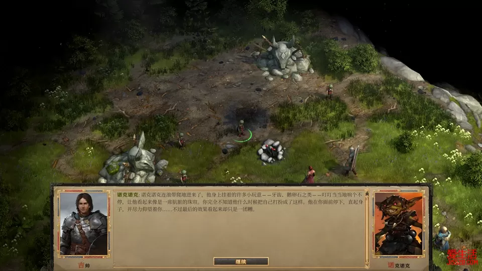 游戏评价/序章 踏上荣耀的第一步 第一章 失窃之地(1) 第一章 失窃之地(2) 第二章 巨魔之乱(1) 第二章 巨魔之乱(2) 第二章 巨魔之乱(3) 第二章 巨魔之乱(4) 第三章 开花季节(1) 第三章 开花季节(2) 第三章 开花季节(3) 第四章 瓦恩领失踪事件(1) 第四章 瓦恩领失踪事件(2) 第四章 瓦恩领失踪事件(3) 第五章 重生的军阀(1) 第五章 重生的军阀(2) 第五章 重生的军阀(3) 第六章 河流诸王之战(1) 第六章 河流诸王之战(2) 第六章 河流诸王之战(3) 第七章 无尽哭号之声 第八章 被诅咒的国王 现在我们先去地图右下角一个叫龙叶峡谷的地方找一个道具,一箱真正的宝石,这是交给主城商人艾琳的道具,交给她后一周就会有回报,前面在沃达凯的古墓中拿到的独角兽的角,就是艾琳下一步任务所需的道具,时间到了之后来交就行,后面就不会再提。 另外,龙叶峡谷里还有一个融化的戒指碎片(13/13),但是只需要12个就可以组成戒指,所以多出来的这个可以直接卖掉吧。龙叶峡谷继续往下走一点,是个叫铁矿沟的地方,里面是一大群蜘蛛,其中有个原始巨蜘蛛,可以顺路打掉 回城处理王国事务时,很有可能会收到诺克诺克的个人任务。此外还有个恶魔先祖来拜访,不要着急赶走这个恶魔,他是DLC角色凯莉柯的个人任务,当然他约我们去的位置其实是个陷阱 这个任务先不着急,离开时先去城里和诺克诺克对话,说要去他的小地精领地看看,然后出城时带上安米芮和诺克诺克,准备下面的一系列任务。 首先是去地图上新出现的地精营地,诺克诺克在这里崇拜玛拉什图,如果想让诺克诺克走英雄线,就必须选择混乱中立或者混乱邪恶的选项,让他保留雕像 下面去野蛮人建立的新营地六熊营地,就在刚刚和野蛮人交战的燧石草原下方,进去后会发现安米芮的好友尼拉克成为了六熊部落新的酋长,送给她一千金币作为支持,可以获得安米芮的好感。 这时候差不多应该完成了搜寻阿玛格的事件,地图上能找出阿玛格之墓了,进入地图和野蛮人对话,他们对无面姐妹似乎有怨气,鼓动他们一起对付无面姐妹,不仅战斗更轻松,经验值还更多。注意:从这张地图开始,各种对话检定、文字冒险检定所获得的经验值将远超打怪的经验值,在有大量经验的地方会做提示,提前存档以便顺利通过所有检定。 击倒无面姐妹后进入古墓,稍微走两步就会遇到一个文字冒险,这个文字冒险里经验值最多的是感知35和运动35的检定选项,先感知,再退出来重选运动,可以获得两次3840点的经验。 古墓里陷阱很多,可以让林翠打开提升技能的歌前进,在一条小巷子的几具尸体上有写满符文的古代皮革碎片(6/15),在左下角快下楼的房间里地面有个排气孔,里面也有写满符文的古代皮革碎片(7/15) 先别急着下楼,回头往左侧通道走,这里有个隐藏门,提前记录后来找出隐藏门,里面是个强力囚魂魔,消灭后搜刮道具,这里有天陨铁碎片(3/17) 搜完道具就可以下楼,下层走左边通道,很快又会遇到文字冒险,用巧手解除三次压力板可以获得三次经验。 然后会到达一个持续释放陷阱的通道,这里的陷阱是无法解除的,只有派一个人冲进陷阱后面的门,拐两个弯之后和一个烛台互动才可以解除这里的陷阱,但在探索之后这里的陷阱还会第二次释放,变成火球,要再一次和这个烛台互动才能彻底解除。 从陷阱区域继续,干掉一个高等火元素,再进入一个大厅干掉一个铁魔像,注意附近的排水口里有个写满符文的古代皮革碎片(8/15) 接下来往左边走,拐两个弯有一个隐藏门,进去后可以找到写满符文的古代皮革碎片(9/15),然后出来往南走,在骨头堆里又有个写满符文的古代皮革碎片(10/15) 之后会绕到地图的右边,在一个骷髅和幽灵的大厅里有写满符文的古代皮革碎片(11/15),不要遗漏。 然后从右边的楼梯再回到第一层,这里注意一定要记录一下,因为会有经验超多的检定。一个叫佐勒克的墓穴守护者挡住队伍,这里可以嘴炮通过,告诉守护者,曾经杀死过鹿王,杀死过沃达凯,然后再唬骗他,最后再威吓,这一套下来,可以获得一万多经验,这要打多少怪才能获得啊。 之后别忘了搜刮一下守护者的大厅,这里又有一个写满符文的古代皮革碎片(12/15) 现在可以进入里面直面阿玛格了,他似乎被手上的剑控制了心灵,以至于搞不清楚究竟自己是阿玛格,还是手中的剑是阿玛格,但不管怎么样,他的实力是相当强悍,手中的剑基本上两刀一个小朋友。幸运的是,他的血量不算高,加满各种BUFF,用弓箭手把他勾引出大厅,和他的手下打个时间差,还是有可能获胜的。 之后的对话注意,选择和他谈谈,然后放他自由,再选择和他成为结义兄弟,这会对最终的结局有影响。 注意离开大厅的位置有个宝箱里面有写满符文的古代皮革碎片(13/15) 离开古墓后,野蛮人部落会聚集在门口,选择继续让阿玛格做野蛮人的酋长,留在领地,获得一个诅咒研究,阿玛格。 到这里,重生的军阀主线任务就算全部完成了,现在可以把附近一些地图探索一下。 阿玛格之墓左上角有个暴怒峡谷,是过检定加经验的地方,任何时候来过都可以。 阿玛格之墓右下角和左上角有两个叫神秘神龛的地方,这里是一个大谜题极饿女王的两个小部分,其中一个石碑像下图这样摆放 另一个石碑像下面这样摆放 然后到右上角的覆盆子沟,这里有个德鲁伊,身上有天陨铁碎片(4/17)。 接下来去左边的被亵渎的石冢,进去后选择翻箱子,可以找到写满符文的古