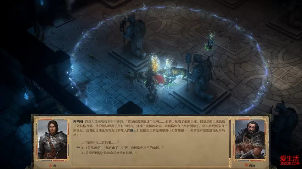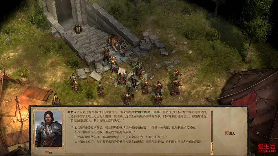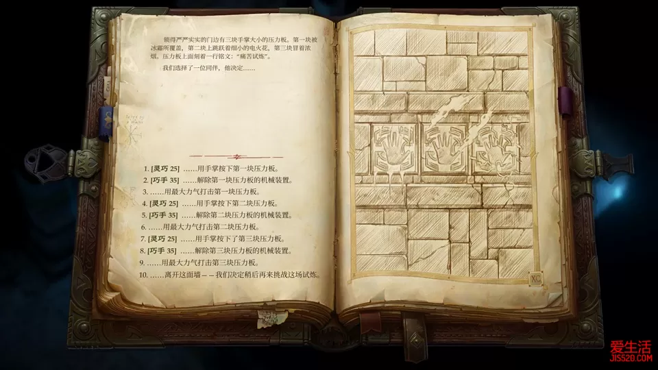 游戏评价/序章 踏上荣耀的第一步 第一章 失窃之地(1) 第一章 失窃之地(2) 第二章 巨魔之乱(1) 第二章 巨魔之乱(2) 第二章 巨魔之乱(3) 第二章 巨魔之乱(4) 第三章 开花季节(1) 第三章 开花季节(2) 第三章 开花季节(3) 第四章 瓦恩领失踪事件(1) 第四章 瓦恩领失踪事件(2) 第四章 瓦恩领失踪事件(3) 第五章 重生的军阀(1) 第五章 重生的军阀(2) 第五章 重生的军阀(3) 第六章 河流诸王之战(1) 第六章 河流诸王之战(2) 第六章 河流诸王之战(3) 第六章 河流诸王之战(4) 第七章 无尽哭号之声(1) 七章 无尽哭号之声(2) 第八章 被诅咒的国王 现在我们先去地图右下角一个叫龙叶峡谷的地方找一个道具,一箱真正的宝石,这是交给主城商人艾琳的道具,交给她后一周就会有回报,前面在沃达凯的古墓中拿到的独角兽的角,就是艾琳下一步任务所需的道具,时间到了之后来交就行,后面就不会再提。 另外,龙叶峡谷里还有一个融化的戒指碎片(13/13),但是只需要12个就可以组成戒指,所以多出来的这个可以直接卖掉吧。龙叶峡谷继续往下走一点,是个叫铁矿沟的地方,里面是一大群蜘蛛,其中有个原始巨蜘蛛,可以顺路打掉 回城处理王国事务时,很有可能会收到诺克诺克的个人任务。此外还有个恶魔先祖来拜访,不要着急赶走这个恶魔,他是DLC角色凯莉柯的个人任务,当然他约我们去的位置其实是个陷阱 这个任务先不着急,离开时先去城里和诺克诺克对话,说要去他的小地精领地看看,然后出城时带上安米芮和诺克诺克,准备下面的一系列任务。 首先是去地图上新出现的地精营地,诺克诺克在这里崇拜玛拉什图,如果想让诺克诺克走英雄线,就必须选择混乱中立或者混乱邪恶的选项,让他保留雕像 下面去野蛮人建立的新营地六熊营地,就在刚刚和野蛮人交战的燧石草原下方,进去后会发现安米芮的好友尼拉克成为了六熊部落新的酋长,送给她一千金币作为支持,可以获得安米芮的好感。 这时候差不多应该完成了搜寻阿玛格的事件,地图上能找出阿玛格之墓了,进入地图和野蛮人对话,他们对无面姐妹似乎有怨气,鼓动他们一起对付无面姐妹,不仅战斗更轻松,经验值还更多。注意:从这张地图开始,各种对话检定、文字冒险检定所获得的经验值将远超打怪的经验值,在有大量经验的地方会做提示,提前存档以便顺利通过所有检定。 击倒无面姐妹后进入古墓,稍微走两步就会遇到一个文字冒险,这个文字冒险里经验值最多的是感知35和运动35的检定选项,先感知,再退出来重选运动,可以获得两次3840点的经验。 古墓里陷阱很多,可以让林翠打开提升技能的歌前进,在一条小巷子的几具尸体上有写满符文的古代皮革碎片(6/15),在左下角快下楼的房间里地面有个排气孔,里面也有写满符文的古代皮革碎片(7/15) 先别急着下楼,回头往左侧通道走,这里有个隐藏门,提前记录后来找出隐藏门,里面是个强力囚魂魔,消灭后搜刮道具,这里有天陨铁碎片(3/17) 搜完道具就可以下楼,下层走左边通道,很快又会遇到文字冒险,用巧手解除三次压力板可以获得三次经验。 然后会到达一个持续释放陷阱的通道,这里的陷阱是无法解除的,只有派一个人冲进陷阱后面的门,拐两个弯之后和一个烛台互动才可以解除这里的陷阱,但在探索之后这里的陷阱还会第二次释放,变成火球,要再一次和这个烛台互动才能彻底解除。 从陷阱区域继续,干掉一个高等火元素,再进入一个大厅干掉一个铁魔像,注意附近的排水口里有个写满符文的古代皮革碎片(8/15) 接下来往左边走,拐两个弯有一个隐藏门,进去后可以找到写满符文的古代皮革碎片(9/15),然后出来往南走,在骨头堆里又有个写满符文的古代皮革碎片(10/15) 之后会绕到地图的右边,在一个骷髅和幽灵的大厅里有写满符文的古代皮革碎片(11/15),不要遗漏。 然后从右边的楼梯再回到第一层,这里注意一定要记录一下,因为会有经验超多的检定。一个叫佐勒克的墓穴守护者挡住队伍,这里可以嘴炮通过,告诉守护者,曾经杀死过鹿王,杀死过沃达凯,然后再唬骗他,最后再威吓,这一套下来,可以获得一万多经验,这要打多少怪才能获得啊。 现在可以进入里面直面阿玛格了,他似乎被手上的剑控制了心灵,以至于搞不清楚究竟自己是阿玛格,还是手中的剑是阿玛格,但不管怎么样,他的实力是相当强悍,手中的剑基本上两刀一个小朋友。幸运的是,他的血量不算高,加满各种BUFF,用弓箭手把他勾引出大厅,和他的手下打个时间差,还是可以获胜的。 之后的对话注意,选择和他谈谈,然后放他自由,出门后选择和他成为结义兄弟,这会对最终的结局有影响。注意离开大厅的位置有个宝箱里面有写满符文的古代皮革碎片(13/15) 离开古墓后,野蛮人部落会聚集在门口,选择继续让阿玛格做野蛮人的酋长,留在领地,获得一个诅咒研究,阿玛格。到这里,重生的军阀主线任务就算全部完成了,现在可以把附近一些地图探索一下。 阿玛格之墓左上角有个暴怒峡谷,是过检定加经验的地方,任何时候来过都可以。 阿玛格之墓右下角和左上角有两个叫神秘神龛的地方,这里是一个大谜题极饿女王的两个小部分,其中一个石碑像下图这样摆放 另一个石碑像下面这样摆放 然后到右上角的覆盆子沟,这里有个德鲁伊,身上有天陨铁碎片(4/17)。接下来去左边的被亵渎的石冢,进去后选择翻箱子,可以找到写满符文的古代皮革碎片(14/15),回头的时候三