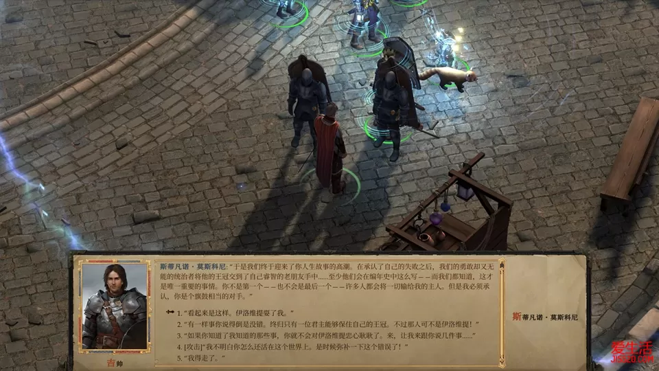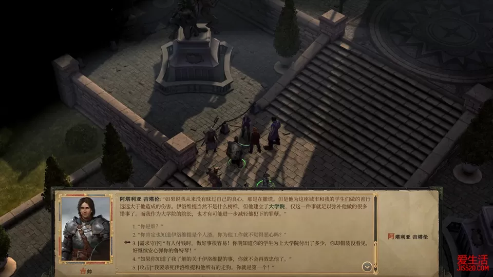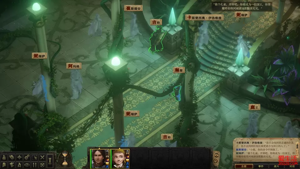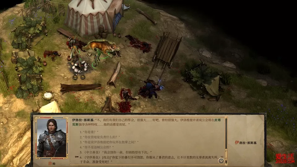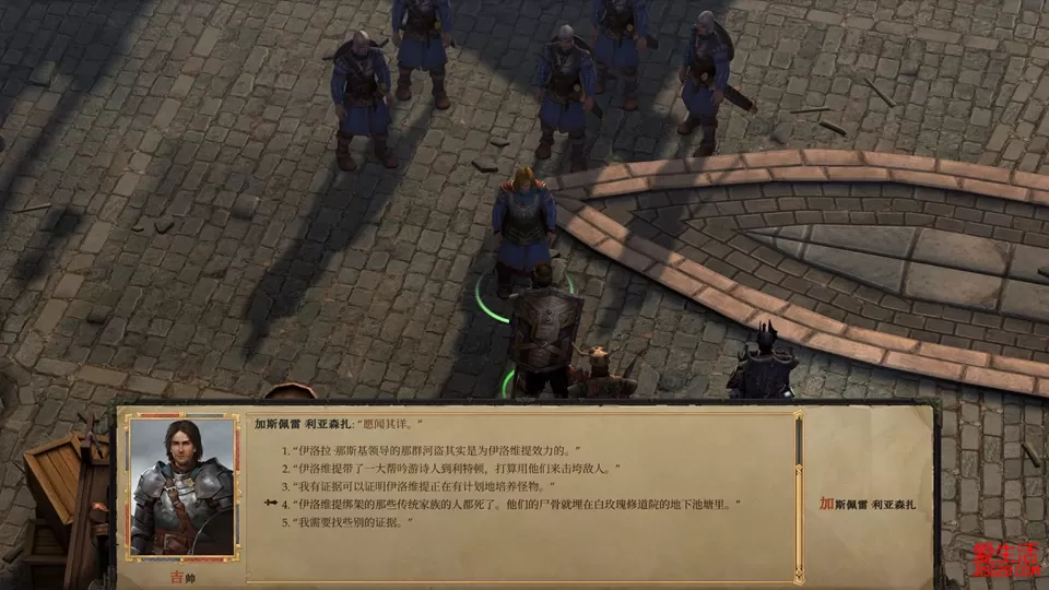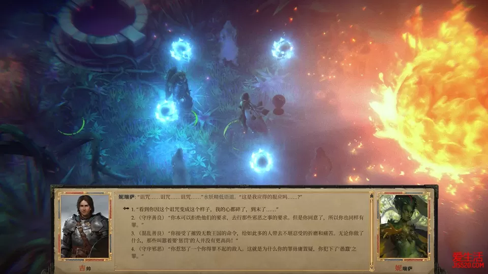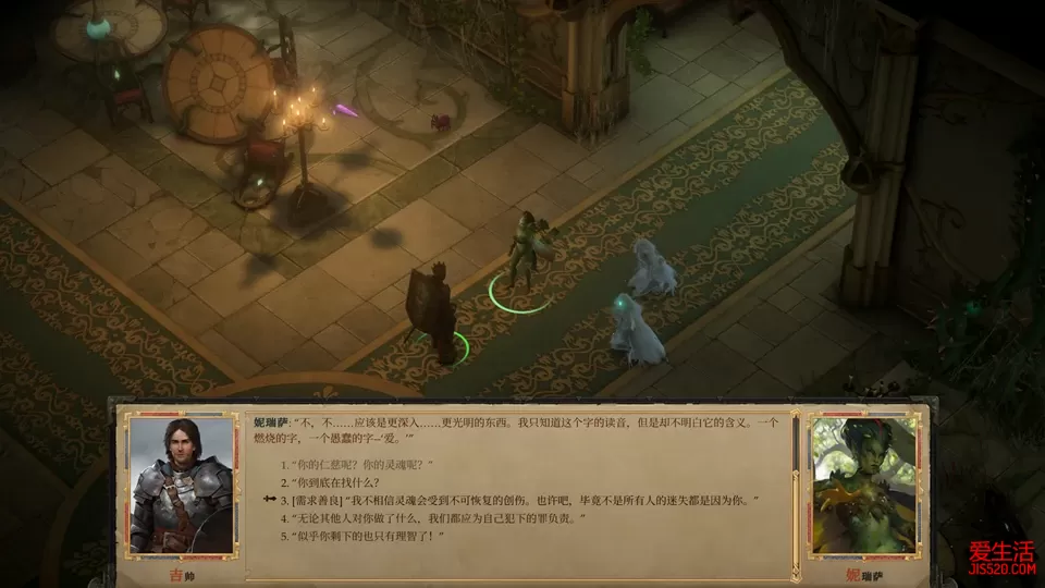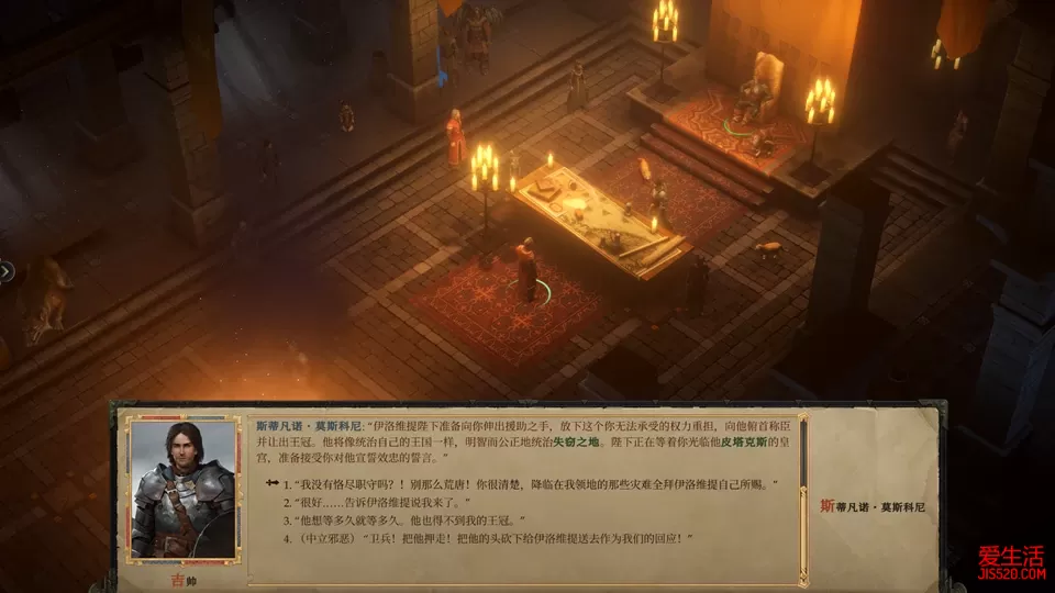 游戏评价/序章 踏上荣耀的第一步 第一章 失窃之地(1) 第一章 失窃之地(2) 第二章 巨魔之乱(1) 第二章 巨魔之乱(2) 第二章 巨魔之乱(3) 第二章 巨魔之乱(4) 第三章 开花季节(1) 第三章 开花季节(2) 第三章 开花季节(3) 第四章 瓦恩领失踪事件(1) 第四章 瓦恩领失踪事件(2) 第四章 瓦恩领失踪事件(3) 第五章 重生的军阀(1) 第五章 重生的军阀(2) 第五章 重生的军阀(3) 第六章 河流诸王之战(1) 第六章 河流诸王之战(2) 第六章 河流诸王之战(3) 第六章 河流诸王之战(4) 第七章 无尽哭号之声(1) 七章 无尽哭号之声(2) 第八章 被诅咒的国王 下面就是解决邻国的破坏组织。一路往南,直到在河边发现一个马戏团驯兽地点,这个地图不大,主要的敌人是巨魔,需要注意的是上方右侧有个天陨铁碎片(10/17),地图最右侧的栅栏门里有个侏儒,就是风马牛辩论会里找麻烦的那家伙,干掉他,也算是报仇了。如果打不开这个栅栏门的锁,可以从下方的洞口用运动检定进去。地图左边还有两个巨魔,应该是艾昆达尤的仇人,选守序善良干掉他们。 解决巨魔骚乱之后,西北方还有个叫刀刃河营地的地方,这里是河盗的地盘,进去把河盗全部清理光,注意右侧山头上还有两波河盗。其中一个河盗最后会求饶,建议选择守序善良杀了他,因为本章后期有一个检定需要守序,多积累一些守序的数值。 接下来去皮塔克斯河湾北面的利特顿,这里是散播谣言的源头。进去后果然发现地上有大量谣言传单,都是在这里印制的,把这里的人都干掉,然后进入左侧的酒馆。 酒馆里有一个老熟人,第三章出现过的狼人伊瓦尔,还记得吗?当时特别说明不要杀了他,就是为了今天的见面。用交涉32的检定说服伊瓦尔站在我们这边,全灭敌人后,再和伊瓦尔对话,可以获得第14个诅咒,伊瓦尔 这样皮塔克斯国王对失窃之地的骚扰就全部解决了,不过别着急去找皮塔克斯国王伊洛维提,先去左下角的嬉笑岭,这里有极饿女王任务的最后一块石碑,按照下图的位置摆放,皇后就会出现,选择混乱邪恶的答复,皇后会赠送一套强力装备,给瓦尔瑞用最合适 同样在这张地图里,右上角的尸体有一个天陨铁碎片(11/17)。也同样在这张地图里,左边有个传送门,里面有个独特怪红帽子,别漏了。 在探索的过程中,很有可能会遇到一个随机事件,一个哥布林在路上卖主角的王座,说服它或者买回王座,失窃的王座任务就会完成。 还是不着急去皮塔克斯做主线,而是回城,管理一下王国,升级一两个数值,等待林翠和说书人研究尼瑞莎的梦境。在升级一次数值的时候,耶萨尔很有可能会来汇报,她想去追踪自己的精灵营地,和那些精灵见一面,答应她然后陪她一起去,这是耶萨尔最后一个个人任务了。 目的地就在西边的精灵营地,地图上已经标好了,进去后发现一个惊人的事实,领头追杀耶萨尔的就是耶萨尔的女儿诺特拉拉,而耶萨尔也很过分,要献祭自己的女儿给女神,难怪这对母女不对付。用交涉36的选项说服诺特拉拉,可以获得大量经验,然后干掉所有精灵,再反过来说服耶萨尔放过自己的女儿,又能获得大量经验值(接近三万) 两头经验值吃完,母女终于和解,但耶萨尔的女神也降下了惩罚,把耶萨尔劈成了碎片。直到游戏最后通关前,我们是再也见不到耶萨尔了。 回主城,如果尼瑞莎的梦境还没有研究好,就再升级一次主城的数值,直到尼瑞莎的梦境研究完成,和说书人对话,就可以进入尼瑞莎的梦境,林翠会和主角一起进入梦境中。 在梦境里,会看到最初的尼瑞莎是个和邪恶斗争的好人,选你们说的是哪个王国?会得知尼瑞莎被灯王诅咒,逼她毁灭一千个王国。 灯王这里的动画开始重复后可以和尼瑞莎对话,一定要选择看到你这个样子,我的心都要碎了……嗯…… 进入宫殿后,要选择你的仁慈呢?你的灵魂呢?接着选择需求善良的选项,如果跟着攻略走此刻肯定是善良阵营。 进入文字冒险,选择自己变成蓝色的妖精,林翠变成一个飞舞的墨水瓶,然后用魅力检定成功,建造一条通向天空的阶梯,见到被困的尼瑞莎,选择不要屈服,不要绝望。 离开文字冒险,进入内殿,会看到从第一章开始,尼瑞莎是如何煽动鹿王、崔斯提安、阿玛格、伊洛维提这些人与主角为敌的,可以看出,尼瑞莎是从头到尾以来,在背后操纵一切的幕后黑手。 之后的对话里,选择了解了这一切,但不知道该如何帮助尼瑞莎解除诅咒,尼瑞莎会说出一个叫白玫瑰修道院的地方,选择好吧,我这就去看看,就可以离开尼瑞莎的梦境了。 这个白玫瑰修道院就在地图的西面,已经标记好了,直接去就行。进去后会遇到陷阱和大量的敌人,还好修道院非常小,很快就能到最里面,击败一个园丁,打破水钟,救出一个叫伊文德拉的仙女。伊文德拉是尼瑞莎的表姐妹,也是尼瑞莎用来控制这些国王的传声筒,目前距离尼瑞莎毁灭一千个王国还差一两个了,无论是毁了伊洛维提的皮塔克斯,还是毁了主角的王国,都是尼瑞莎想要的结果。之后伊文德拉想要留在主角的王国,虽然瓦尔瑞会反对,但一定要选择同意,这关系到隐藏结局。 离开之前先潜水找几个宝物,然后离开白玫瑰修道院,再次回城。这个修道院下面的分支路线通向最终独特怪,一条龙,建议18级以上再来打。回城之后,皮塔克斯王国的使者前来挑衅,直接把他怼回去 然后所有人突然昏倒,尼瑞莎出现了。(如果刚刚没有放过伊文德拉,这里尼瑞莎就不会出现)。和往常一样,对话时不要