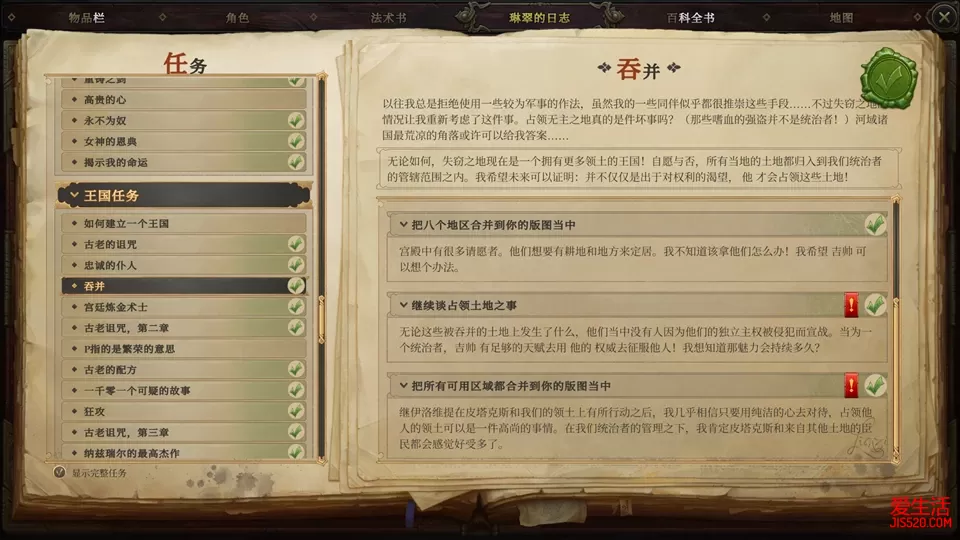 游戏评价/序章 踏上荣耀的第一步 第一章 失窃之地(1) 第一章 失窃之地(2) 第二章 巨魔之乱(1) 第二章 巨魔之乱(2) 第二章 巨魔之乱(3) 第二章 巨魔之乱(4) 第三章 开花季节(1) 第三章 开花季节(2) 第三章 开花季节(3) 第四章 瓦恩领失踪事件(1) 第四章 瓦恩领失踪事件(2) 第四章 瓦恩领失踪事件(3) 第五章 重生的军阀(1) 第五章 重生的军阀(2) 第五章 重生的军阀(3) 第六章 河流诸王之战(1) 第六章 河流诸王之战(2) 第六章 河流诸王之战(3) 第六章 河流诸王之战(4) 第七章 无尽哭号之声(1) 七章 无尽哭号之声(2) 第八章 被诅咒的国王 此时,第六章河流诸王之战就已经结束了,但我们还有很多支线任务可以做。 首先就是解决刚刚在酒馆里接到的任务,船长让我们找到一本魔法书还记得吗?这本魔法书就在皮塔克斯北面的乌有之地,早就在地图上发现这个地方,但一直没进去,为的就是先接船长的任务。 乌有之地里左边有个尸体,上面有最后一个天陨铁碎片(17/17),拿到后再进地图中央的怪门,门里有个叫布莱克摩尔的人,告诉他是马廷船长派来取书的,他回复这本书还在写,选择知识(神秘)40检定,帮他写,通过的话有两万多经验值,这本书就能立即写完。 这时几个恶魔出现了,要抢这本书,利用书来打开恶魔的传送通道,当然要阻止,双方开始大战,布莱克摩尔也变成了一条巨龙帮助主角,干掉恶魔后和布莱克摩尔对话,搜刮一下他家的宝物,然后回皮塔克斯的酒馆,把书给船长,这个任务就完成了。 回主城,吞并皮塔克斯,把皮塔克斯原本的官员都安顿好,犯罪分子绳之以法,王国的数值就会全部加20点,至此,所有王国地盘全部吞并完毕,别忘了在皮塔克斯建设传送阵,以后再去可以直接传送,免去奔波之苦。 之后去找说书人,把天陨铁碎片全交给他,制作一个星际指挥官手套,这是最好的碎片装备了,力量加8,还能发射激光。 安排王国事件时,别忘了研究刚刚获得的石楠簇诅咒。 稍微升级个数值,等几天,皮塔克斯的传送阵建好,就带上奥克塔维雅前往皮塔克斯,这里出现一座孤立的宅邸,其实就是奥克塔维雅母亲的豪宅,奥克塔维雅质问母亲为什么把自己卖掉,母亲解释那不是她的真心,而是她为了避免父亲逼她抛弃女儿的手段,但最后被科技联盟的人骗了,失去了女儿。 接下来先不着急回城,把附近的地图都探一探。一路往左,在尽头有个偏僻幽谷,如果在路上没遇到过偷王座的地精商人,在这里就能找到他,如果已经遇到过,这里就不用来了。 一路往北,森林舞会、杂货摊、林地狂欢节三张图里都有独特怪物,具体什么怪物就不说了,总至这三张图的怪物难度不低,尤其是林地狂欢节。最西边还有个哭泣树丛,这里不是独特怪,但是敌人挺厉害。 按照我们的攻略,应该还剩下最后一个独特怪物,就是地图最西北角的伊尔苏利亚克巢穴,这是一条巨龙 这条巨龙是游戏迄今为止最难打的怪,虽然不是最难的,但如果用游戏自带英雄,自动升级,并且难度在普通难度及以上的话,想要击败他并不容易,至少我就没能做到,哪怕召唤了最强的元素和大量召唤物,也没能打过他,所以我把难度调低了打过去的 击败了这条巨龙,从井里获取的钥匙上的计数应该已经减为0了,此时孤立的坟冢深处的门就可以打开,我们下面就会去解决 路上别忘了收集一下王国资源,然后回城管理王国之后,解决幽暗绝境和孤立的坟冢两个大型支线任务。从前面一章开始,就没有再进幽暗绝境DLC,是因为我发现每一章进去会很浪费时间,队伍实力不强就不得不反复休息,而王国管理又特别需要时间,所以在这最后一章进去,一次性解决比较节约时间。 让我们接第四章的进度,从幽暗绝境第九层开始,现在队伍的等级应该很高,所以打法就不详述了,只说每层必须找到的重要道具。 第九层的重要道具《黎维尔未寄出的信》在摆放杂乱物品房间的桌上。 第十层重要道具《幽暗绝境志怪录:恶毒歌者》在地图东北方向的隐藏门里,需要感知26,现在的等级发现隐藏门应该没问题 第十一层的重要道具《游侠日记》也在东边的隐藏门里,宝箱前的桌子上。 第十二层的重要道具《游侠的最后一页日记》在树怪房间的隐藏宝箱里,这个宝箱要察觉技能才能看见。 最后和本层的BOSS恶毒歌者作战,从她身上拿到《黎维尔的摇篮曲》 接下来直接进十三层,重要道具学生的练习本,在北面的成年三臂巨人身上。 第十四层重要道具捕获者的日记在最后狂暴弓箭手北面的隐藏房间,一个有陷阱的棺材中 第十五层重要道具俘虏的信在接近下楼前的房间里,要察觉技能发现。 第十六层也是最后一层,重要道具捕获者的死亡笔记在地图左边,有死魂精的房间里,注意先别打右边的捕获者,要拿完重要道具再打,否则不会掉落重要道具。 这里的捕获者身边还有个打手,难度不低,建议先干掉捕获者,别忘了两个怪身上都有重要道具。 十六层打完,可以回到地面向入口处看守的巨龙歇礼仑汇报,告诉它我们已经干掉了每一层的堕落英雄,就可以进入第十六层左上角的裂缝,去打DLC幽暗绝境的最后BOSS,一只超级强大的大虫子。 和前面的巨龙伊尔苏利亚克一样,这只大虫子也不是原版Build可以随便打的,要用上圣骑士的神圣印记,以及牧师的守护之心,想要挑战普通以上难度,请自建队友极限Build之后再来,攻略这里就调成简单难度过了。其实原版Build就算用最简单、伤害最低的难度,这个怪也