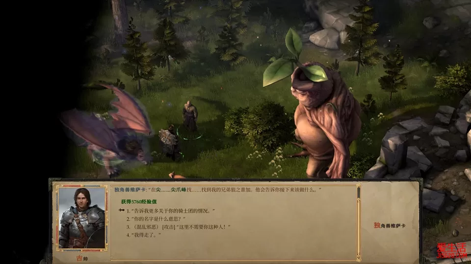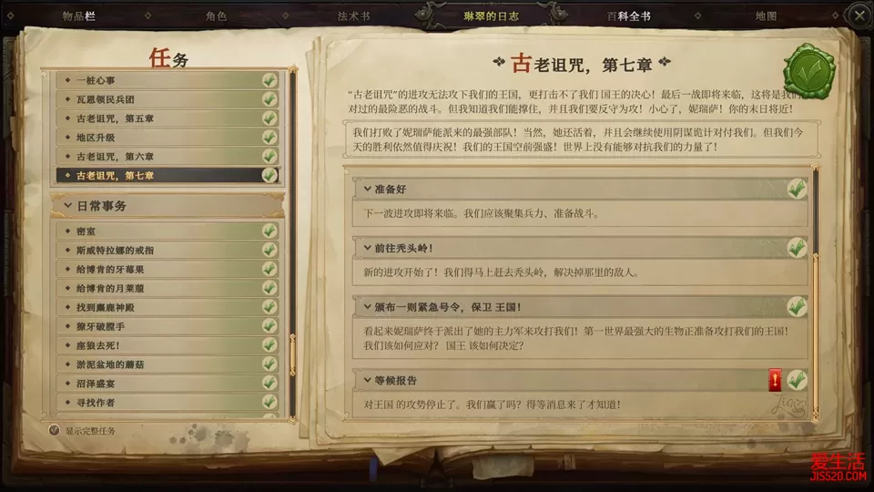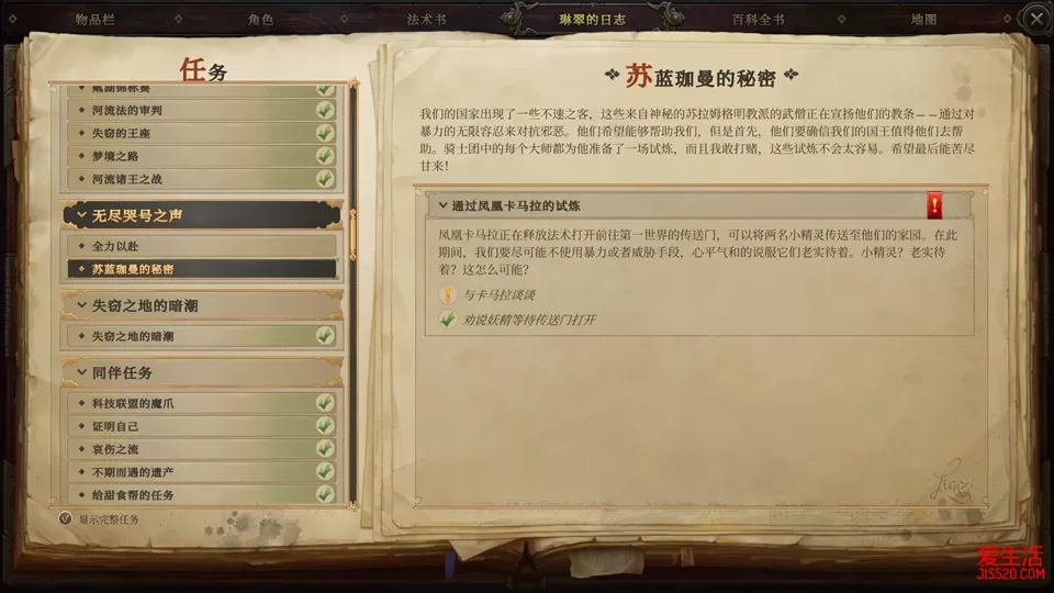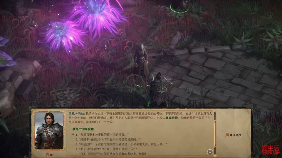 游戏评价/序章 踏上荣耀的第一步 第一章 失窃之地(1) 第一章 失窃之地(2) 第二章 巨魔之乱(1) 第二章 巨魔之乱(2) 第二章 巨魔之乱(3) 第二章 巨魔之乱(4) 第三章 开花季节(1) 第三章 开花季节(2) 第三章 开花季节(3) 第四章 瓦恩领失踪事件(1) 第四章 瓦恩领失踪事件(2) 第四章 瓦恩领失踪事件(3) 第五章 重生的军阀(1) 第五章 重生的军阀(2) 第五章 重生的军阀(3) 第六章 河流诸王之战(1) 第六章 河流诸王之战(2) 第六章 河流诸王之战(3) 第六章 河流诸王之战(4) 第七章 无尽哭号之声(1) 七章 无尽哭号之声(2) 第八章 被诅咒的国王 第七章 无尽哭号之声 如果上一章没能达成王国全数值十级,那这一章就不要管了,因为王国管理会不断刷事件降低王国数值,上一章达不到这一章就更没可能达到,专心完成两个支线任务以及通关吧。 游戏从头到尾一直受到尼瑞莎的进攻,现在是时候反攻了,目的地就在最西边的刀锋城堡,从皮塔克斯过去要一天的时间,这里就是通向尼瑞莎第一世界的入口。 这里有两个任务,一个是左下角的苏蓝珈蔓的秘密,还有一个是地图中间的第一王冠 苏蓝珈蔓的秘密比较折腾人,一群自称什么骑士团的人要考验主角团队,第一个人的考验是对话中的技能检定,存好记录再对话肯定能通过。 第二个考验在麋鹿神殿左上方,要求在一定时间内扛住三个怪物的攻击,但不能杀死怪物,用AC很高的人比如瓦尔瑞可以轻松扛过去。 第三个考验在尖爪峰顶部,老鹰巢穴右边,以前去过,上去之后和考验的人对话即可。 最后回到刀锋城堡,第三个考验的人就等在这里,对话后去找第四个考验的人,他的初始位置在地图左边一个有宝箱的塔下面,他会提问题,答对就通过。 这些问题的答案全部在几个考验者的对话里出现过,当然没有谁会去记这些东西,所以就把答案直接列举,考验者会从这些问题中随机选三个。教师阿瓦洛出生在(来自于)“迦摩睿”;在“阿斯菲尔森林”冥想;教师阿瓦洛寻求真理时做了“组织关于信仰的辩论”;骑士团的名字叫“英雄之道”;教授的是哲学是“智者之道”;不教授任何武术技巧;英雄之道是“让这个世界变得更美好”;骑士团的主神殿在“乌有之地”;骑士团崇拜“艾斯若提、雪琳、莎恩芮、阿巴达、易洛理”等善和秩序之神;骑士团大师有“凤凰、独角兽、狼、狮、蜥蜴”; 对话后他会往下走,跟上去,所有考验的人都会在最初的位置等着,最后判定主角通过考验,给一个一般般的头盔。 现在做第二个任务第一王冠。到达地图中央后,会看到两个人在战斗,一个叫蠕虫人,一个叫扭曲女巫,都是尼瑞莎的手下,他们在争夺一个叫第一王冠的宝物。 当这两个人战斗的时候不要上去插手,他们打一会就走了,这时一个叫众者塞卡的人出现,自称来自四维时空,可以看透主角生命长河的每一刻,此时希望主角可以找到第一王冠的三个碎片给他 任务本身毫无难度,但是如何选择关系到经验值的多少。首先从接任务的地方往右,再往南会遇到几个树人,和树人对话,用唬骗检定直接拿到第一个王冠碎片,经验值最高。 然后往北,看到猎人法尔德洛克斯在指挥一群上古紫虫拆塔,和他对话,选唬骗45的选项有6万多经验,一定要记录之后再对话。干掉猎人和紫虫之后在塔下可以找到第二个第一王冠碎片。 第三个王冠碎片就在这条路继续往左,一个叫萨林尕达法的人被峭壁蛇龙围困,帮他干掉峭壁蛇龙,然后问王冠的事情,原来王冠碎片被刚刚这只峭壁蛇龙吃了,直接搜刮就能找到。 碎片全部拿到之后,一个王者的灵魂出现,他就是被尼瑞莎毁掉的第一任国王,对他说实话,问如何对付尼瑞莎,最后同意把他释放,这个王冠就可以每天用来召唤一次强力打手。 之后回去找众者塞卡交任务,任何选项都可以完成任务,但是建议直接选要自己保留,这样能解开整个游戏最后一个诅咒研究,第一王冠,还保留了每天召唤一次的强力打手 如果是按照攻略玩的,此时应该早已满足13个诅咒研究的要求了,最后一个诅咒就不用研究了,等研究好游戏早已通关,所以就这样吧,准备进入尼瑞莎最后的城堡,入口就在这张地图中央,遇见萨林尕达法的位置右边 注意,建议进去之前,先做一些准备,因为进入尼瑞莎城堡之后就没法休息了,所有魔法和损耗都无法回复,虽然难度不大,但是无法回复真的很麻烦 可以回一趟主城,装备整理好后把不需要的东西卖掉,再把所有回复卷轴、回复药,尤其是复原术卷轴、复活卷轴全买了,如果想追求成就的,还要凑够200万金币(准确的说是170万),然后再回刀锋城堡,一路杀到中央入口。中央入口处有一群死魂精,还有尼瑞莎的手下魔角猎人和一只次等炸脖龙守着,都干掉之后,就可以进入传送口。 进入时空漩涡时,众人失散了 主角一个人在第一世界醒来,尼瑞莎的表妹伊文德拉按照约定赶来,告诉主角这里是时间边缘的城堡,尼瑞莎把所有队友全都抓走了。临行前,伊文德拉给了主角一个灯笼,如果对前面的游戏有印象,应该知道,这个灯笼佩戴与否,可以让主角在两个时间维度之间穿越 下面就可以出发去找回队友了,这里不用担心,只要是按照攻略进行的,所有队友都会安然无恙,除了…… |