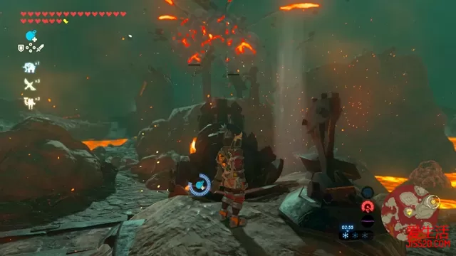 塞尔达传说旷野之息心得/速刷三条龙/四个大精灵位置/多获得小精灵/刷装备/刷弓箭 第一章 初始台地(上) 第一章 初始台地(下) 第二章 双子山区域 第三章 哈特诺村 第四章 快速提升实力之旅(上) 第四章 快速提升实力之旅(下) 第五章 水之神兽瓦露塔 第五章 风之神兽瓦梅德 第五章 雷之神兽瓦娜波力斯 第五章 火之神兽瓦鲁达尼亚 第六章 照片里的记忆 第七章 最终决战 火之神兽瓦鲁达尼亚 之所以把火之神兽放在最后一个,并不是因为这个BOSS有多难,而是这里的环境比较恶劣,如果没有耐火套装,掉血速度非常快,所以需要做一些前置任务。首先,去火山前必定会经过山麓驿站,这里有个NPC凯特会卖防火药,建议花150卢比买三个,以防万一,然后上山去开奥尔汀之塔 奥尔汀之塔 塔本身无难度,只是比较难到达,一是塔位于高山上,二是路上有守护者巡逻 ,建议游戏中期可以制造守护者武器再来,把路上巡逻的守护者干掉,慢慢找比较缓的悬崖爬上去就好 支线 捉住耐火蜥 从奥尔汀之塔往北飘,注意在主路上有一个聚居点,南部采矿场,这里有个头戴耐火石盔的人会发布抓耐火蜥蜴的任务,成功后会奖励一个耐火套装的配件,遗憾的是奖励并不是最贵的耐火头盔,而是耐火石铠,所以无需纠结,这个任务先放一边,在防火药时间结束之前,继续沿着主路赶往北面的鼓隆城 进入鼓隆城第一件事就是购买耐火头盔和耐火裤子,这两个装备上就已经不怕火了,然后再回头去南部矿场抓耐火蜥蜴,耐火蜥蜴很好装,蹲下来它们就绝对不会逃跑。抓满10个耐火蜥交任务,获取耐火石铠,就此,耐火套就完成了 这个区域其他的支线和神庙请参考专题链接,咱们继续进行主线任务 寻找阿陨 和鼓隆城中间的老头布尔多对话,他会委托林克帮他寻找阿陨。 按照任务指引去后山寻找阿陨,守门的矿工会告知阿陨去了岩浆中那座山上的保管库帮老大拿药。 这里有个矿石大炮,把圆炸弹扔进大炮后膛,按下爆炸即可激发大炮。大炮一侧有个控制杆,可以调整两个方向,其中一个方向必然可以击中远处的蜥蜴人弓箭手。 沿着大炮指向的方向前进,会到达下一个大炮的位置,一样的操作,用大炮干掉蜥蜴人后继续前进。但是途中有几个蜥蜴人用大炮是打不到的,只能上去肉搏。接下来的一段路需要利用上升气流不断飞行前进,途中一个骷髅山洞里有宝箱,里面是10根冰箭。 最后来到最高点的保管库,发现门口被巨石堵了,只能听到里面的人求救。 这时利用滑翔飞到对面有大炮的高台上。首先放一个炸弹进炮膛,之后用锤子攻击机关,这样大炮会慢慢改变角度,当炮口顿准保管库大门的瞬间起爆,就可以利用大炮轰开巨石,注意千万不能等炮口停稳,停稳的时候方向就不在保管库了。 救出保管库里的阿陨,这里能找到50卢比和10支冰箭,还有一剑一锤。接下来再次返回鼓隆城找老大。 入侵准备 老大布尔多会给林克3个防火药,让林克和阿陨去奥尔汀桥对付神兽。抬头看天空,会看到村子上方有一座很大的桥,接下来就要从这里前往奥尔汀桥。途中会遇到温泉,在里面泡泡的话可以免费回复HP。接下来一直往目标前进,路上敌人不少,还不时有火球落下。来到目标点,发现有两个敌人在围攻阿陨。敌人攻击力很高,如果耐火装备没有升级的话会有点苦恼,所以建议把耐火装备升个一两级再打。 消灭敌人后阿陨会主动充当炮弹,扔个圆形炸弹进炮膛,之后攻击机关调整炮口,把吊桥轰下来。 从桥上过去,接下来神兽会派出很多侦察机,如果林克或阿陨被其侦察到,神兽就会释放大量火球,所以要尽量避免。 如果是游戏后期才来,可以造十根左右的古代兵装箭,看到侦察机就用古代兵装箭秒杀,会非常轻松。但如果是游戏早期来,没拿到古代兵装箭,也是可以过关的,因为可以借助各种道具和地形,解决或躲避这些侦察机。这些大铁块可以砸碎侦察机,直接秒杀 这种铁板架在两块石头上,挡住侦察机的探照灯,林克可以直接从下面通过,只有最后一处旋转巡逻的侦察机,需要躲在石缝里通过。当然,还是建议带上古代兵装箭,打过这里轻轻松松。 每当林克到达安全地带,就可以吹口哨召唤阿陨过来。一路上一共需要发射3次大炮,阿陨作为炮弹,目标就是神兽。3次炮击之后,神兽就会躲进火山,林克跳下火山一路追击而去。 神兽体内 一进神兽体内,发现一片漆黑,还好眼球怪会发光,干掉两个眼球,会出现两个宝箱,从右边的宝箱里能获得火把。点燃火把可以看到附近的情况,沿着边缘走,直到发现一个烛台,点燃后开门,进去之后干掉一个守护者,搜刮一下房间。 附近还有一个烛台,沿着边缘找到,点燃后开门,里面就是勇导石,调查之后整个迷宫都会变亮。 这个神兽的控制是水平和垂直变换,变化较少,所以这里的终端其实是比较简单的 首先返回上一个房间,抬头看天花板能看到第1个终端,倾斜神兽的身体往左后可以调查。另外开始这几个房间有很多眼球,全部干掉之后能获得好几个宝箱。 保持向左倾斜的状态,原本的一根横梁就会变成台阶,爬坡来到外层,这时让神兽恢复水平方向,往左边走,击破挡路的眼球,注意有个眼球在下方。 到边缘找到一个宝箱,里面是古代核心,不要离开这个宝箱的位置,再次让神兽变成水平状态,注意在神兽翻转时别掉下去,翻转完成后,会看到前方有个眼球,击破之后就能看见第2个终端 第3个终端的谜题其实刚刚经过,就