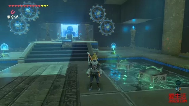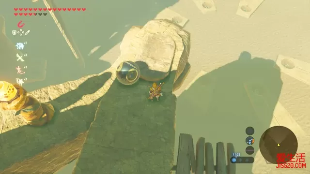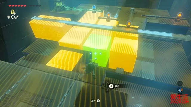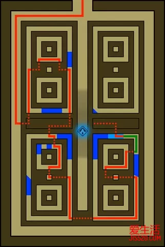 再把导电方块带过来,摆放在两个高台中间的位置,通电后就可以打开第三扇门,里面是第二个导电方块 最后一步最简单,把两个导电方块分别放在门两侧的电源上,就可以打开最后一扇门 4、托卡尤神庙 这个神庙位于沙漠西部,这里有个沙虫莫尔德拉吉克。神庙内部没有任何谜题,只需要干掉沙虫(沙虫会主动吃下林克扔出去的炸弹),或者无视沙虫的骚扰,点燃神庙位置四周的火炬就能打开神庙,进去后就过关,希望身上带着火焰剑之类的装备,会让这个谜题简单很多,火焰剑的获取方法可以参考刷装备的专题链接 5、哈瓦卡伊神庙 神庙位于整个地图的左下角,第四个大精灵的位置,又是一个导电的谜题 首先把两个导电方块如下图摆放,激活第一扇门 第二个区域水里有个宝箱不要忘记拿,里面是古代核心。 然后用磁铁控制中间的链球,注意别让链子绕在柱子上,把链球拉到旁边给电源充电,就会开启一个平台 从平台上去,干掉三个守护者,拿起能量球,放在右侧墙壁的开关上,拿到开关下面的金卢比 之后把能量球拿到平台对面,放在基座上,一个齿轮开始转动,但这里还缺了一个齿轮 齿轮在右侧通道后面,这里有个稍微复杂一点的谜题,解开总共需要两步:第一步,用时间停止定住最近一排中间那个石块 第二步,踩下开关,除了最近一排中间那个石块,其他石块全部往后退,趁此机会用磁铁把左边两个铁方块拉到右侧,和右边两个石块对齐 形成下图这样,最后就能实现三个石块上的线路通电了。 最后把齿轮拿出来放在门前过关 6、斯玛萨玛神庙 神庙位于地图左下角最高的山峰上,需要穿着羽绒服。神庙里没有谜题,但需要解开神庙外的谜题。 在这座山峰顶部,有个破烂的小木屋,里面有一封日记,看过日记就会出现一个任务,雪山的日志。 谜题很简单,让林克举着一个大雪球,站在小木屋南面的悬崖上,一直等到下午四点钟,太阳照在雪球上的阴影刚好覆盖对面悬崖上的圆心,即可解开谜题。 7、达科塔瓦神庙 这个神庙就在沙漠的北端,但是如果正常从驿站过来,需要突破大量蜥蜴人的防守,而且神庙里面还有沙尘暴,地图会消失,导致迷路。建议直接从格鲁德之塔飞过来,这样更轻松。神庙里是电的谜题,难度不高,但如果顺序错了,就会导致谜题卡死,不得不读记录从头再来,所以要注意 首先乘移动平台,去把电源方块用磁铁吸起来,但这样的话移动平台就失去能量停止了,诀窍来了,把电源方块贴在沿途的电线上,平台就又有电了。 之后把电源方块放在下一个升降平台上,注意升到半路有宝箱。 下一个房间里有两个守护者,如果把电源方块扔下去,它们就会被电死,当然,这是一级守护者,直接下去砍一刀也死了。下去拿完背后的宝箱之后,用磁铁把前面的大铁块推走,击打楼下的水晶开关,出现一个移动平台,到对面拿完宝箱再回来 再次拿起电源方块,去乘上面的电梯,到顶部之后把电源方块放在底座上,出现一个移动平台,乘坐移动平台的时候注意挡路的大铁块,用磁铁推着走 到了祭坛那里,可以先跳到护栏上,这样可以直接跳到对面拿宝箱,然后等移动平台回来的时候乘坐,到祭坛过关 8、基玛兹斯神庙 这个神庙位于沙漠西北角,一个巨型遗骨化石中,这个神庙有个前置的神庙任务,格鲁德镇中的人会提示,按照雕像的剑所指的方向,就可以找到这个神庙,但这个前置任务要跑很远的距离,非常麻烦,其实,从格鲁德之塔飘过来是更简单的路。注意这里会爆发沙尘暴,让林克的地图失效,所以飘到沙漠边的高地时,注意提前对准神庙的方向,然后再飘下去 神庙里的谜题就非常简单了,有个巨大的电源球在弹来弹去,第一步就是抓住这个电源球,方法有很多,最简单的就是在一侧用磁铁吸过来,还可以用时间停止定住电源球,然后用弓箭射一下 拿到电源球之后先越过栅栏放进宝箱的房间里,给房间里的灯泡充电,门打开后拿宝箱,出来后再把电源球吸出来,给外面的灯泡充电,就可以到达祭坛了 9、迪拉玛神庙 这个神庙就是荒野之塔南面的迷宫,从荒野之塔或者旁边雪山上的神庙飘过来就可以,一定要从入口处开始走迷宫,捷径是没有的。 按照下图走到最后,进入神庙后没有谜题,奖励是蛮族服,蛮族套装之一 10、拉丘乌罗神庙 神庙位于格鲁德小镇下方,一点点距离,到达之后和夏本努对话,她会提出让林克参加沙海象拉力赛,超过1分30秒,就会把神庙的石球交给林克 拉力赛并不难,只要全程加速就可以,路线不熟悉的话有可能会撞石头退赛,熟悉了之后就很轻松。获胜后把石球放进基座里,神庙开启,里面没有任何谜题 11、裘希奥神庙 这个神庙位于荒野之塔左下角,有个前置任务,格鲁德小镇里的学者罗汀一直在研究七英雄的雕像。其实这个前置任务不接也无所谓,只要到雕像前把七个球放进正确的基座里即可 如果想要自己解谜,就要一个雕像一个雕像的爬,寻找它们身上的符号,在地上的石球中找到符号一致的,放进雕像面前的基座里。第一个雕像的符号就在脚上,很容易就能看见,而且它的石球也已经摆好了。 但后面几个雕像的符号就比较麻烦,有些藏在胸口,有些藏在手臂上,要爬很长时间,太麻烦了,所以就直接按照下图指示摆放石球吧。 唯一值得注意的是,有一个石球在雕像的手臂上,必须爬上去把石球扔下来。 进入神庙后没有谜题,直接过关 12、密苏神庙 神庙位于格鲁德沙漠南边,一个沙丘背后。有个饥渴的女
