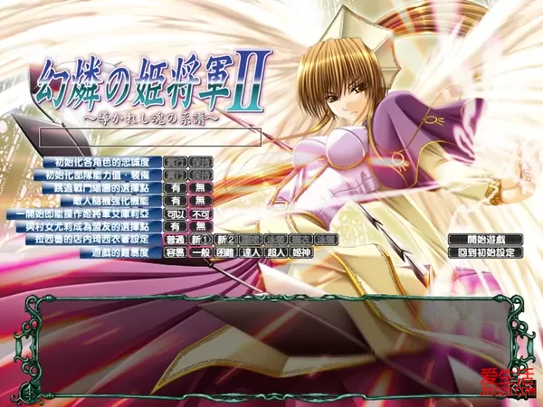 幻燐的姬将军2游戏评价/系统/结局路线 幻燐的姬将军2游戏剧情简介 幻燐的姬将军2全角色加入方法/人物培养 幻燐的姬将军2隐藏魔神/二周目隐藏关 幻燐的姬将军2全装备道具合成方法 幻燐的姬将军2全隐藏道具收集图文攻略1 幻燐的姬将军2全隐藏道具收集图文攻略2 幻燐的姬将军2全隐藏道具收集图文攻略3 幻燐的姬将军2全隐藏道具收集图文攻略4 幻燐的姬将军2全隐藏道具收集图文攻略5 游戏评价 幻燐的姬将军2是2001年Eushully出品的18禁游戏,但如果把这款游戏当作18禁游戏来玩,那就属于暴殄天物了,因为这款游戏的SRPG策略和养成部分,居然意外的好玩,在个人看来,甚至可以排进顶级SRPG行列,仅次于梦幻模拟战和火焰纹章(稍微有点夸张)。 先说它的优点,首先,就是精心设计的人物立绘,在今天看来也不落伍,2001年更属于引领潮流的级别,近二十位女队员姿态各异,气质万千,可以满足各种口味,当然,对于一款卖肉的游戏来说,这属于基本功,和今天国内泛滥的二次元卖肉手游并无二致 除了立绘之外,游戏里的每个角色都有三次转职的机会,每次转职,战斗画面中的人物形象都会有所进化,让人对转职充满了期待 其次,就是非常有挑战的游戏性,从难度来说,这款游戏算是SRPG游戏中数一数二的(这倒是真的),而造成游戏难度高的最主要原因,就是难以使用读档重来的方式反复试错。 游戏设计成每个回合可以记录一次,但这里的回合可不同于其他游戏里的回合,这里的一个回合差不多相当于其他游戏里的四五个回合,敌我双方在这个所谓的回合里要行动至少四五次,也就是说,当你读取存档时,整个战场形势已经天差地别,一旦读取,还意味着半个小时的游戏时间白玩,所以想要通过读档来试错,基本上很难做到。 游戏里的敌人实力是跟随主角队伍的,所以难度始终不低,再加上很难读档,就只能步步为营,谨慎小心了。 话又说回来,一个18禁内容需要如此高难度的过关斩将,确实有点离谱,所以游戏也提供了简单模式,防止真有人被游戏的难度卡住。但如果你刚好就是个喜欢挑战高难度的玩家,那这款游戏绝对适合你 最后,是一些有特色的游戏系统,最具代表性的是,战斗中可以随时切换队员。 类似于火焰纹章,这款游戏的队友数量也很多,一场战斗不能全部放出来,但和火焰纹章不同的地方在于,火焰纹章只能在每关开始前选择出战队友,而幻燐的姬将军可以由主角在战斗中随时放出或收回队友,提供了更高的策略自由度,也是比较有特点的设计。 好吧,必须承认,我的评价确实主观了一些,幻燐的姬将军2多多少少还是存在一些问题的,未必能和皇家骑士团之类的优秀SRPG站在同一个层级上,但如果你是SRPG的爱好者,并且喜欢高难度的挑战,千万不要错过这款优秀的游戏。 至于那些18禁内容,凭借2001年孱弱机能所提供的简单静态画面,恐怕已经无法进入今天见多识广人的法眼,姑且算作一种调剂吧,其实我都快进掉了 游戏要点: 1、电脑的进攻思路:电脑的第一攻击对像是离它最近的人,如果在相同的距离里有几个人的时后就会攻击防御力最低的那个。 2、电脑的LV是计我方前五名成员的平均值,但这并不意味着练级没有用,至少通关前要把主力队员练到40级以上三转,因为每次转职会有一次强力的数值增长,但也不能练太高,尤其是没钱买能力石的情况下 3、游戏参数计算: 行动速度:移动行动值+基本行动值+技能行动值(举个例子:移动12,敏捷38的主角在移动5步后用行动48的技能攻击后实际行动力为[30*5/12]+(60-38)+48=82即主角这次行动后再过82frame才能行动,1回合是500frame) 物理伤害:攻击-防御 魔法伤害:魔法攻击-魔法防御 命中:敏捷+武器命中-对方敏捷度。 会心一击率:运气-对方运气 支援系的魔法是600frame内有效的(从放技的那个frame计起) 每升1LV时忠诚度+1 4、各个据点压制后是可以用来回复HP、MP、SP的,归还中的人也可以回复HP、MP、SP 5、防御中的人,防御解除后要过50 frame才能行动,归还的人再出击时也一样要过50 frame才能行动。 6、战死的人是不能复活的(特定人物和使魔除外) 7、在战前准备画面里可以SAVE,这点对打连续关时非常重要。 8、在战斗中主角身上的道具可以随时存入仓库,在其身边四格的人也同样可以。 分支结局 结局其实可粗分为3类:完美LAW,不完美LAW,CHAOS 完美LAW:要求除魔神外各国的妹子全部为盟友不能漏人也不能收为侧室,不要和魔神结盟,本攻略就是按照完美LAW结局进行的 不完美LAW:没有满足完美LAW的条件但CHAOS值不高,有机会进王妃外的个人线或后宫线,后宫线由于很容易涨CHAOS值所以千万别干收侧室以外的坏事。个人线很好走,除了卡莉安线一定要送掉她带的小正太外,满忠诚+跑完该妹子的事件+其余妹子的事件坚决不触发全可确保走个人线。 CHAOS:要求与盗贼结盟,或者虽然没有和盗贼结盟但CHAOS高于500。王都叛乱时将知道究竟是进了LAW线还是CHAOS线,CHAOS线军神骑士将被奸杀。 所有将妹子收为盟友的行为都是偏LAW的,反之收为侧室偏CHAOS 所有国家可分为三大块: 1、必经之路,包括都市国家群与光龙领,你不可能错过与这两家的纠葛。都市国家群有3次武力征服机会,一次是与盗贼结盟与否,第二次是警备队长的求和提议,第三次是国家长的求和提议,只要3次里翻一次脸,就是国家长侧室的结果,所以要压CHAOS值的后宫线必然是选择最后翻脸。光龙就好说了,你不见她3次就是侧